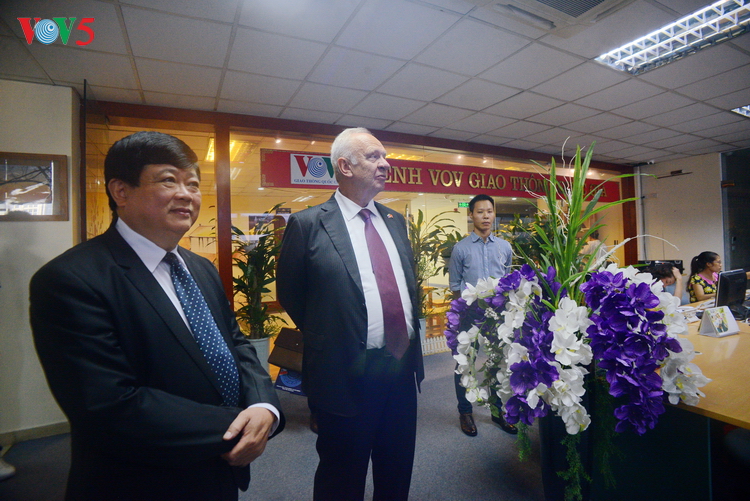 | Khi tới thăm phòng làm việc của kênh VOV Giao Thông, Đại sứ KonstantinVnukov đặc biệt chú ý tới quy trình vận hành và đề cao tác dụng của kênh VOV giao thông trong thời gian Việt Nam tổ chức hội nghị cấp cao APEC 2017 |
