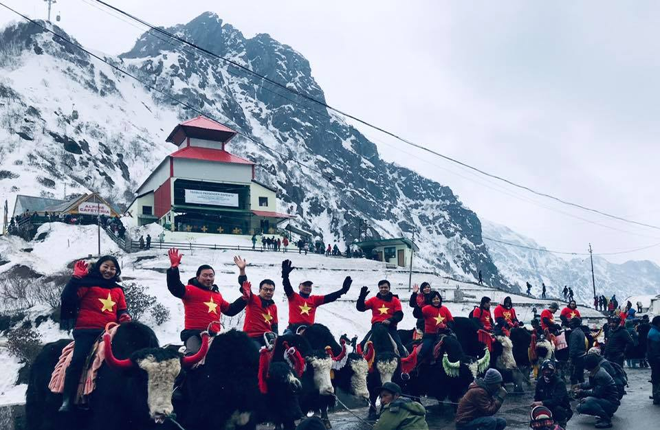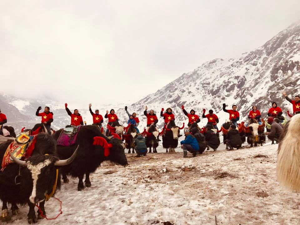 Lần đầu tiên trong lịch sử, các nhà ngoại giao Việt Nam hành quân bằng bò Tây Tạng (Yak) bên cạnh hồ Tsomgo quanh năm đóng băng trên độ cao 3753 mét của dãy núi Himalaya để giới thiệu đất nước Việt Nam.”