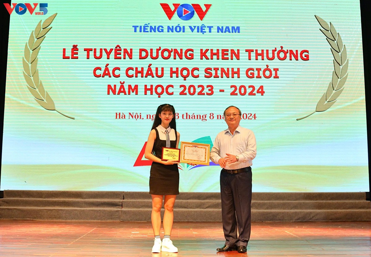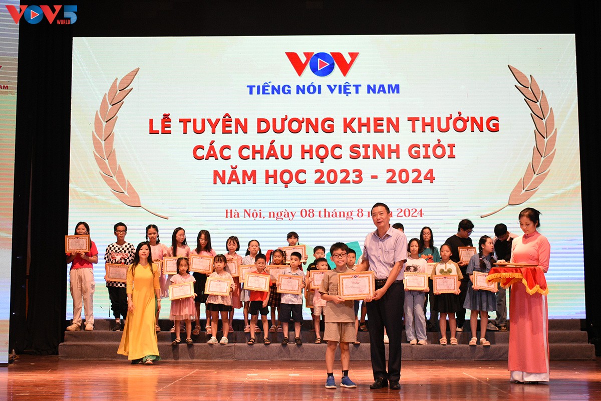 | Năm học 2023 – 2024, Đài Tiếng nói Việt Nam có 1.547 học sinh là con cán bộ, nhân viên đạt học sinh Giỏi ở 3 cấp học (trong đó Tiểu học: 643 cháu, THCS: 538 cháu và THPT 366 cháu). Đặc biệt, 94 học sinh đạt giải trong các kỳ thi cấp Quốc gia, Quốc tế, tỉnh, thành phố và 09 học sinh tốt nghiệp đại học loại Giỏi và Xuất sắc. |