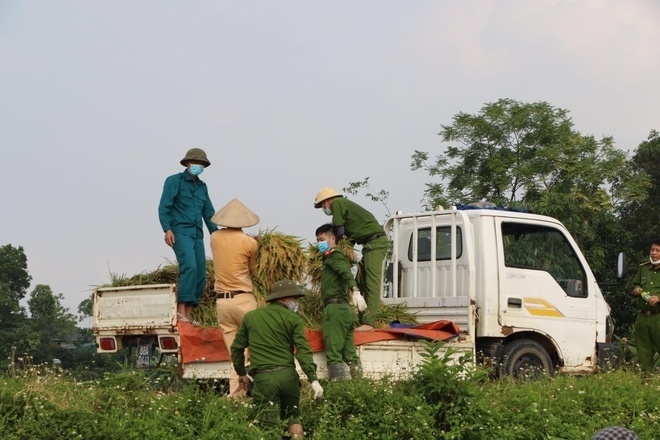 Theo trung úy Nguyễn Duy Tuấn, Phó bí thư Chi đoàn Công an huyện Sông Lô, diện tích lúa trên là của gia đình đang thuộc diện F1, F2, phải cách ly y tế theo quy định.