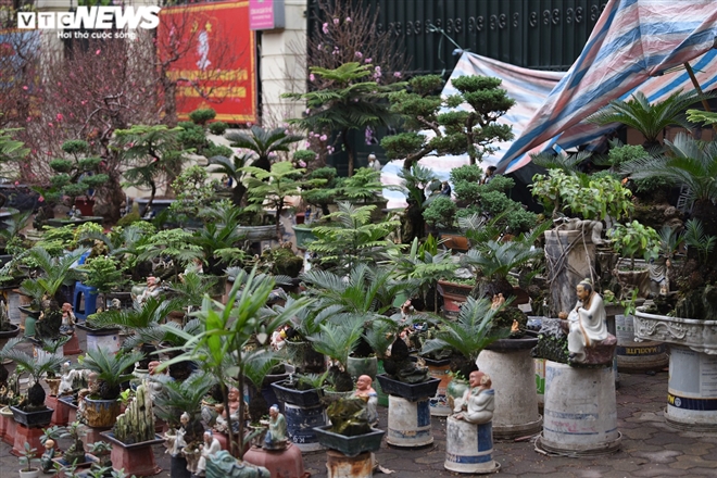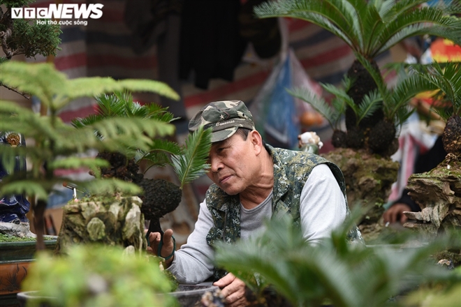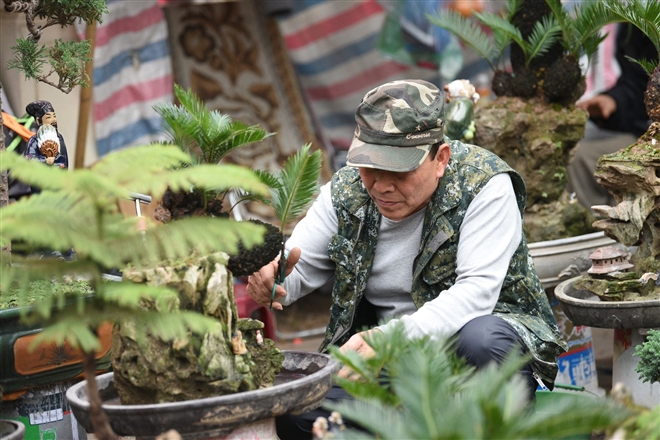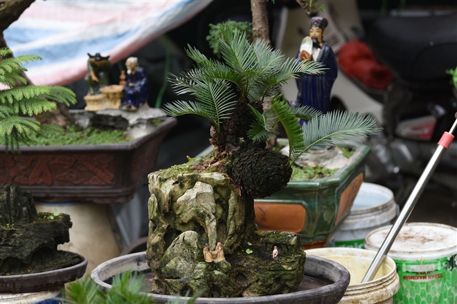 Nhiều năm nay, bên cạnh những cây cảnh truyền thống thì vạn tuế bonsai rất được lòng khách, đặc biệt là giới nhà giàu sành chơi cây cảnh. Năm nay, gian hàng của ông Đỗ Đức Toàn (Hà Nội) đang bày bán khoảng hơn 60 cây cảnh bonsai các loại, trong đó chủ yếu là vạn tuế.