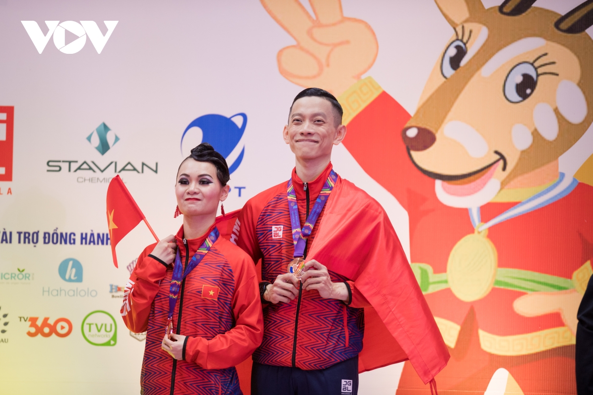 Trải qua 2 ngày thi đấu, đoàn Khiêu vũ thể thao (Dancesport) Việt Nam giành tổng cộng 11 huy chương bao gồm 5 huy chương Vàng, 1 huy chương Bạc, 5 huy chương Đồng trong tổng số 12 nội dung thi đấu.