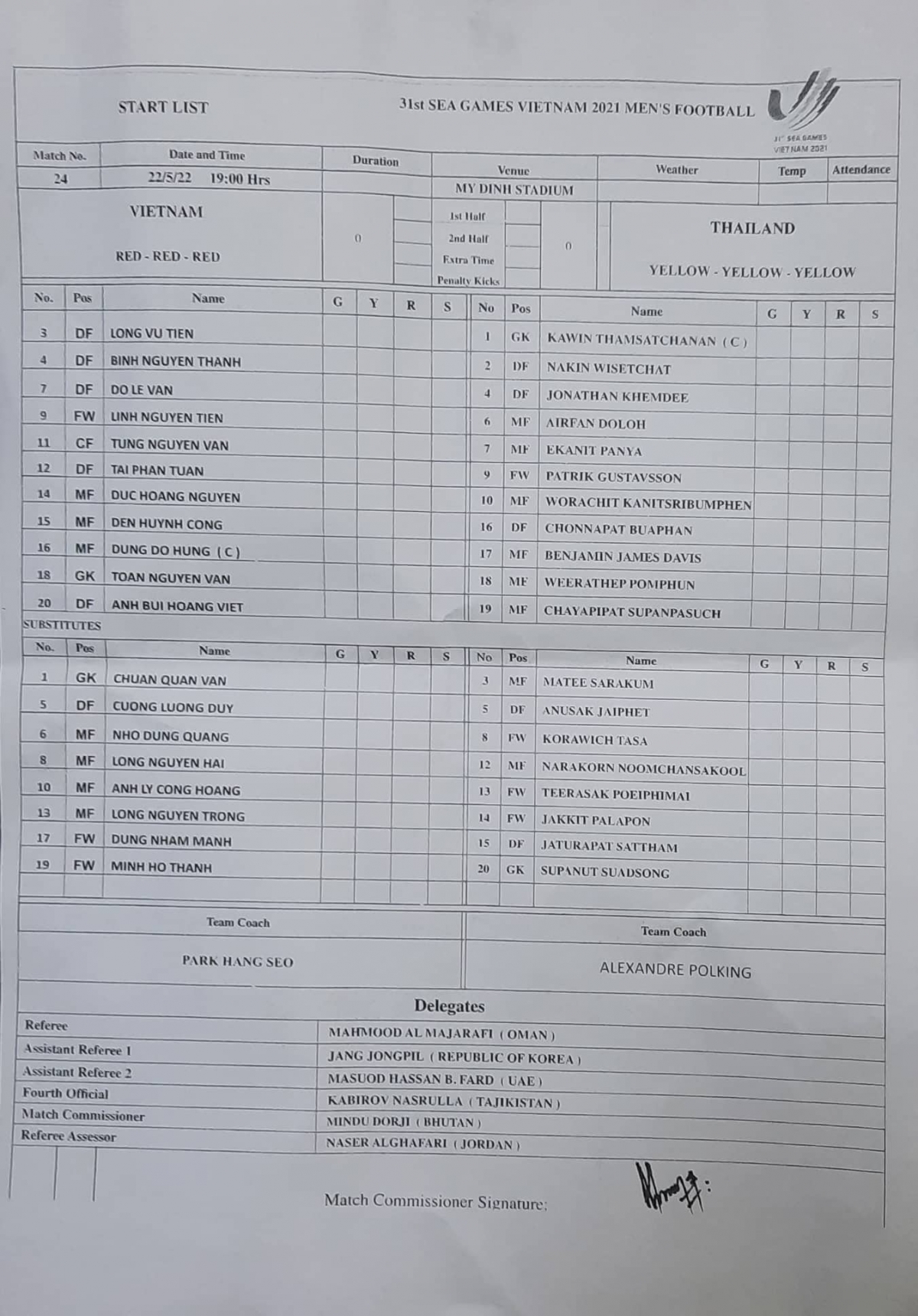 Đầu hiệp 2, U23 Việt Nam có sự thay đổi người khi Mạnh Dũng vào thay Văn Tùng. Thái Lan cũng đưa Tasa vào thay Gustavsson.
