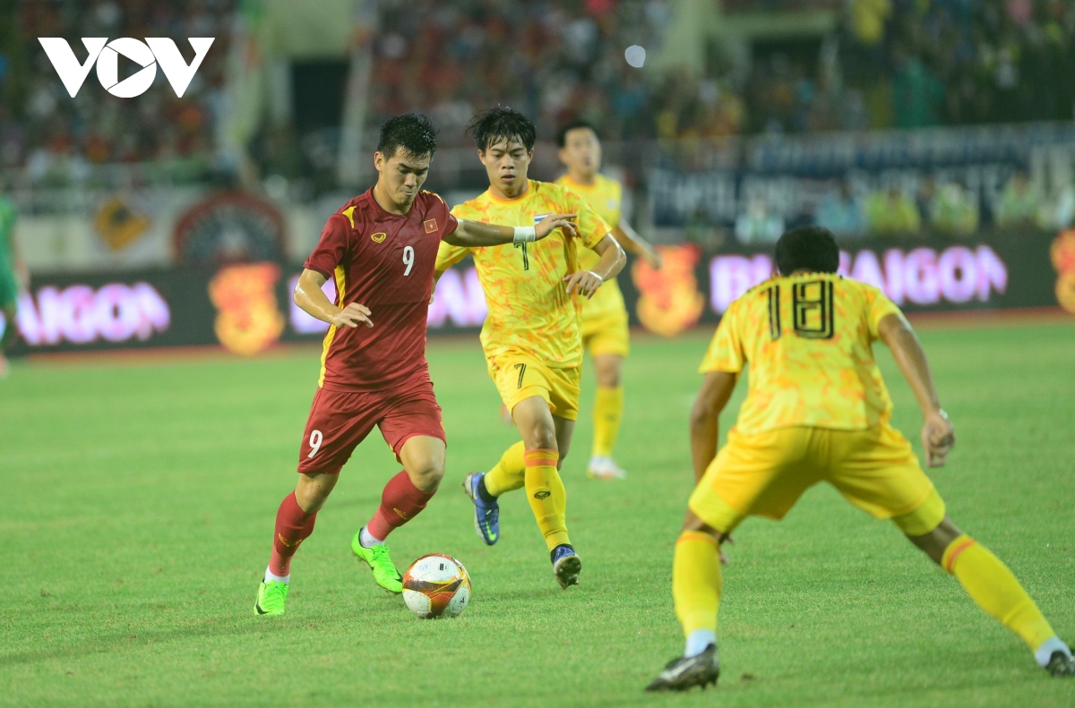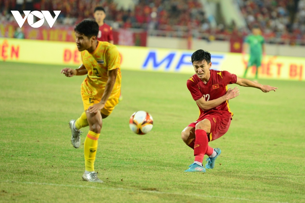 19' Tiến Linh có cơ hội đánh đầu trong vòng cấm Thái Lan nhưng anh đã đưa bóng đi trúng vị trí mà thủ môn Kawin đã chọn.