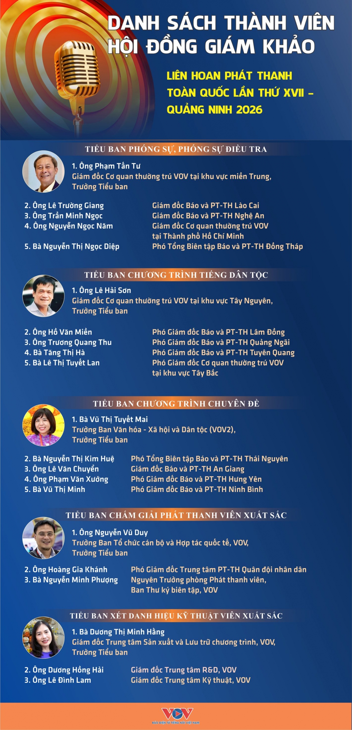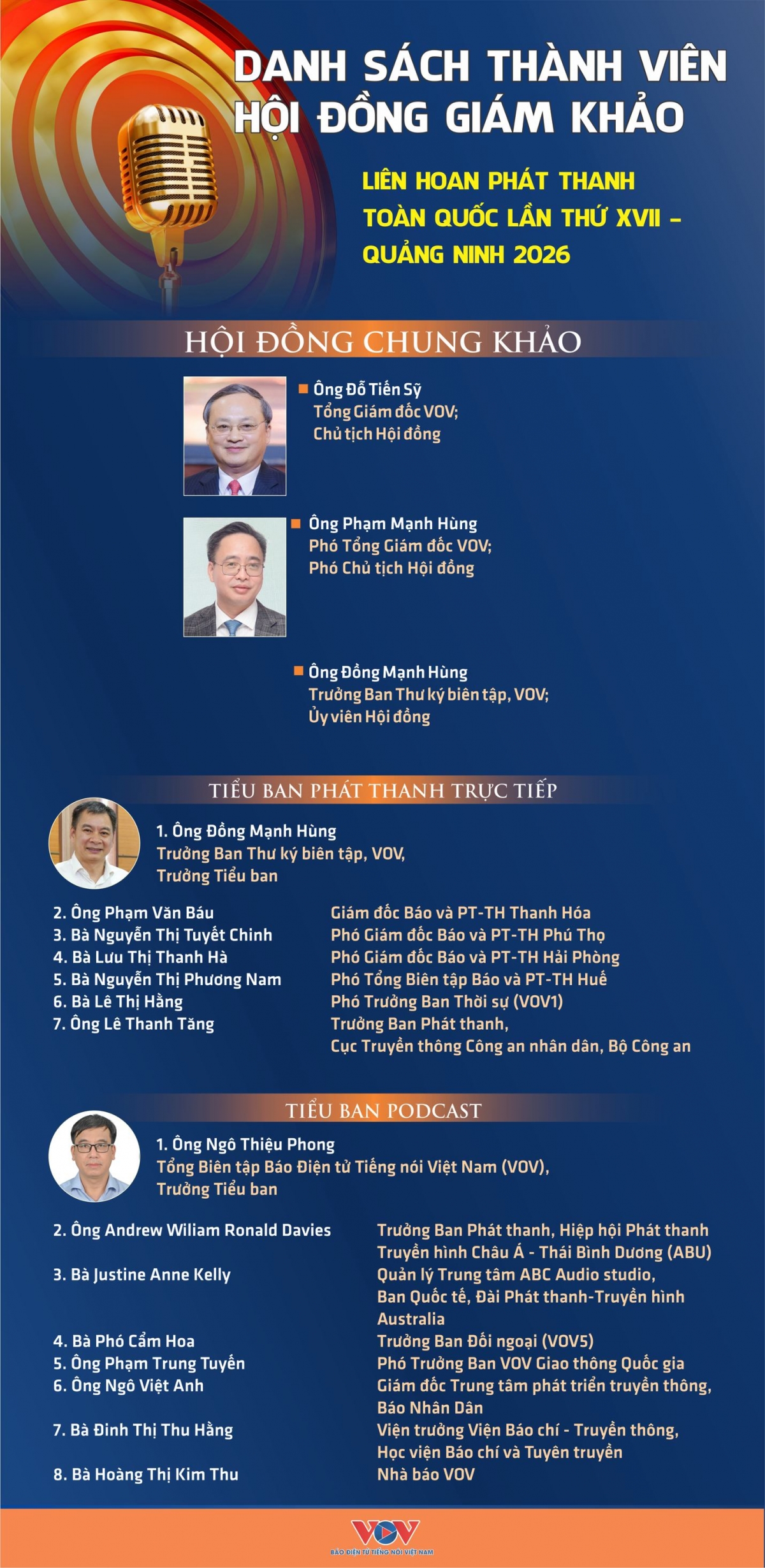 [VOVWORLD] - Liên hoan Phát thanh toàn quốc lần thứ XVII - Quảng Ninh 2026 quy tụ Hội đồng giám khảo gồm nhiều nhà báo, chuyên gia giàu kinh nghiệm, đảm bảo chất lượng chuyên môn cho công tác chấm giải.