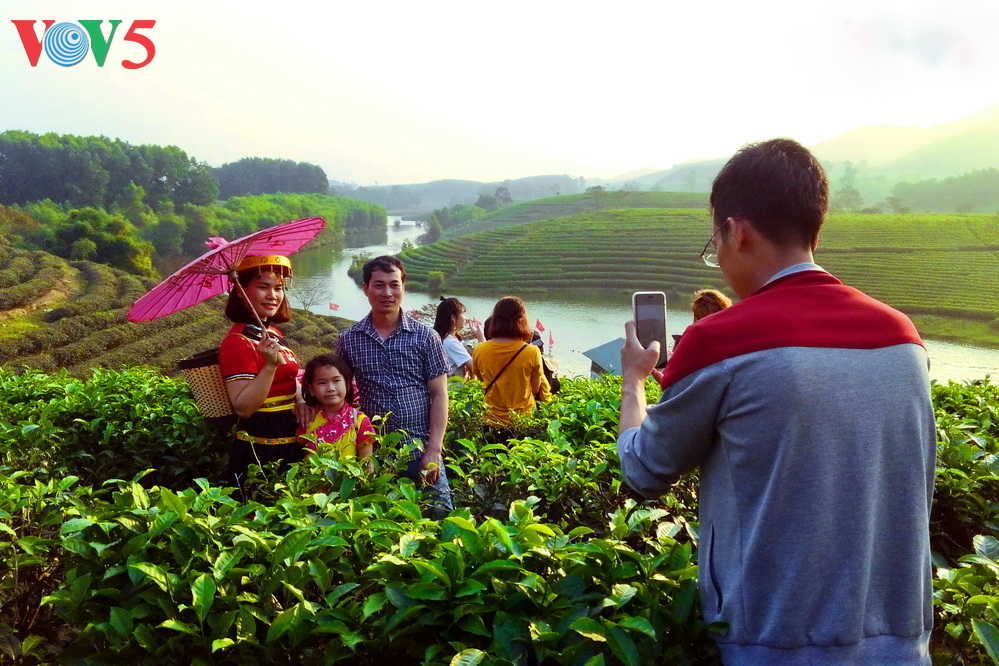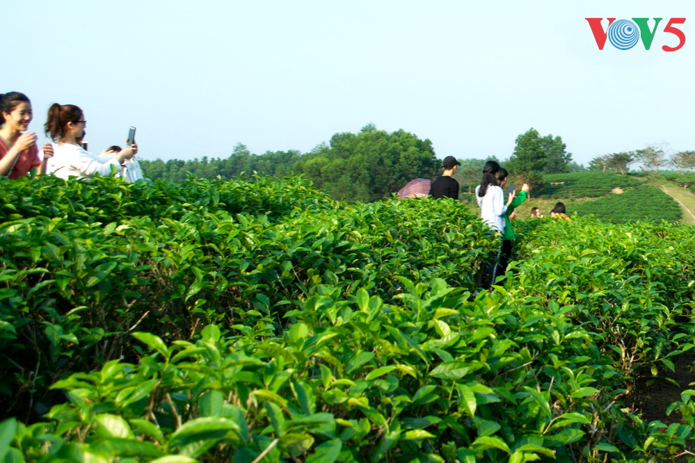 | Đảo chè thu hút nhiều bạn trẻ đến tham quan và chụp hình. |