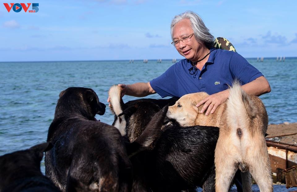 Người lính này cùng những người bạn 4 chân của mình đón những tia nắng đầu tiên sớm hơn đất liền gần 1 giờ đồng hồ. |
