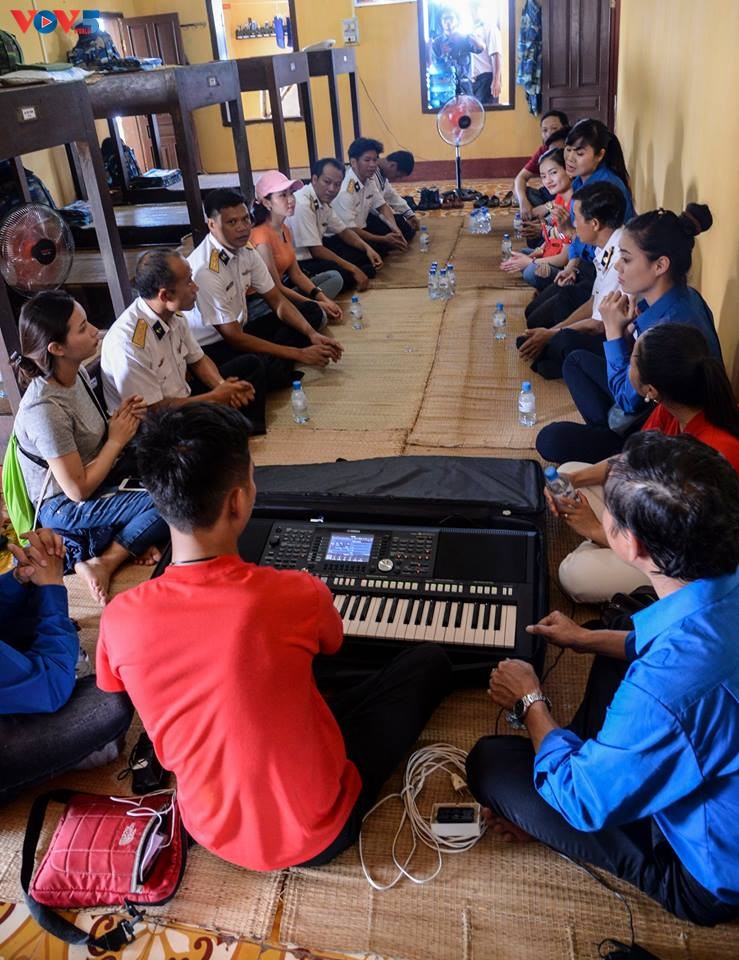 Ngôi nhà trên đảo có diện tích khá nhỏ và nơi giao lưu văn nghệ diễn ra ngay tại phòng nghỉ của chiến sĩ. |