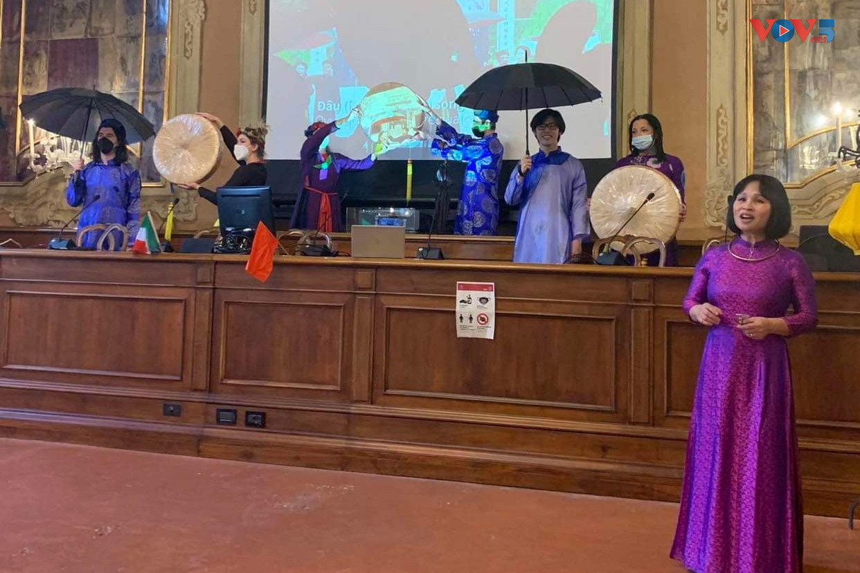 Nhân dịp này, Đại sứ Nguyễn Thi Bích Huệ và ông Marco Cicera đã có buổi làm việc, trao đổi về phương hướng mở rộng hợp tác hơn nữa giữa hai bên, trong đó có việc vận động thêm các nguồn học bổng cho sinh viên Việt Nam sang theo học. Phân khoa Việt Nam tại Đại học Ca’Foscari được thành lập năm 2019, đến nay có 40 sinh viên theo học. Ngoài học tiếng Việt, sinh viên còn theo học các môn về văn hoá, chính trị, lịch sử... Đặc biệt, với sự tham gia giảng dạy của chị Nguyễn Bích Hường, Chủ tịch Hiệp hội Nhịp cầu Văn hóa, các em sinh viên đã được tìm hiểu và học nghệ thuật truyền thống Việt Nam.