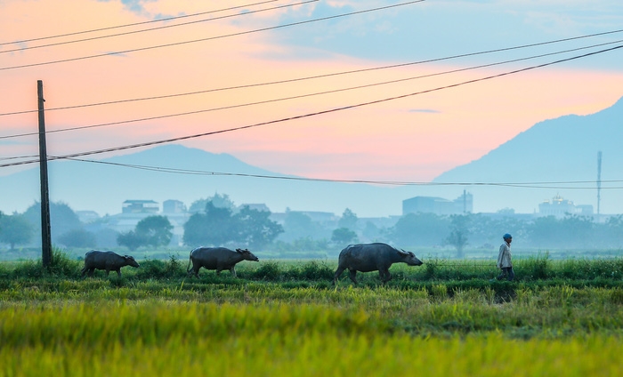 Những đàn trâu đang trở về chuồng sau một ngày đi ăn ngoài đồng