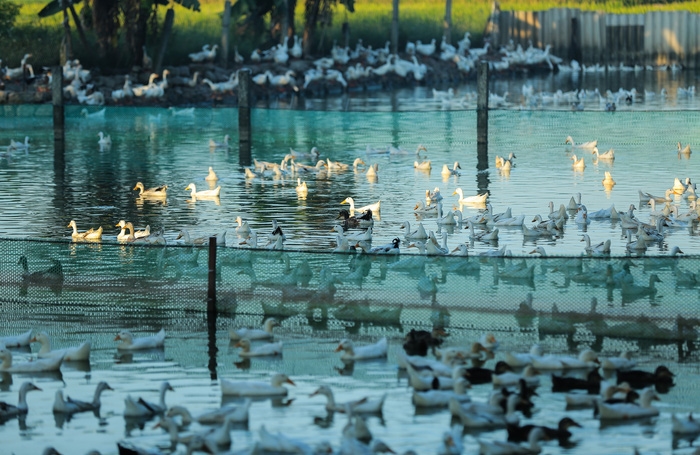 Những con vịt đang hoà mình với nắng chiều xuống nơi làng quê yên bình
