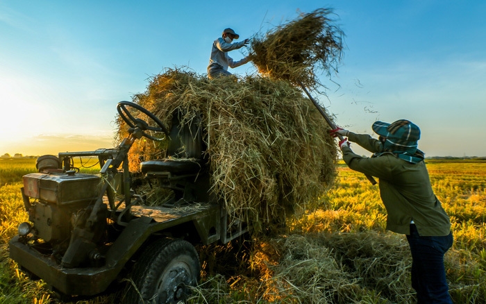 Những chuyến xe chở rơm đã đầy ắp đang được người dân đem về nhà