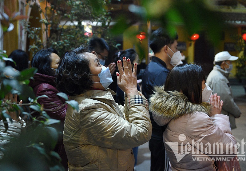 Người dân đi lễ chùa sau thời khắc chuyển giao năm cũ sang năm mới Nhâm Dần. Ảnh: vietnamnet.vn |