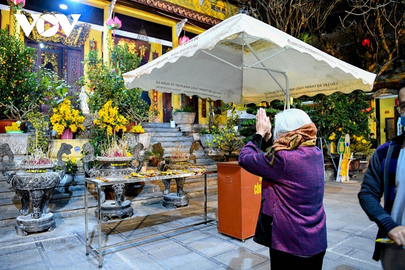 Người Việt tin rằng đi lễ chùa đầu năm không đơn giản để ước nguyện mà đó còn là thời gian để mọi người tìm về với chốn tâm linh sau những ngày tháng vất vả mưu sinh, để tĩnh tâm, an yên... Ảnh: VOV |