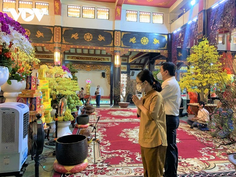 Do dịch COVID-19, năm nay, trong chùa Vĩnh Nghiêm không còn cảnh đông đúc như mọi năm. Ảnh: VOV |