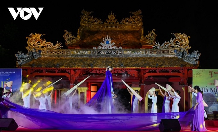 Chương trình nghệ thuật Áo dài “Hà Nội - Huế - Sài Gòn”, hoạt động góp phần tôn vinh áo dài Huế, áo dài Việt Nam và khẳng định thương hiệu “Huế - Kinh đô áo dài”. Ảnh: CTV Lê Huy Hoàng Hải/VOV |