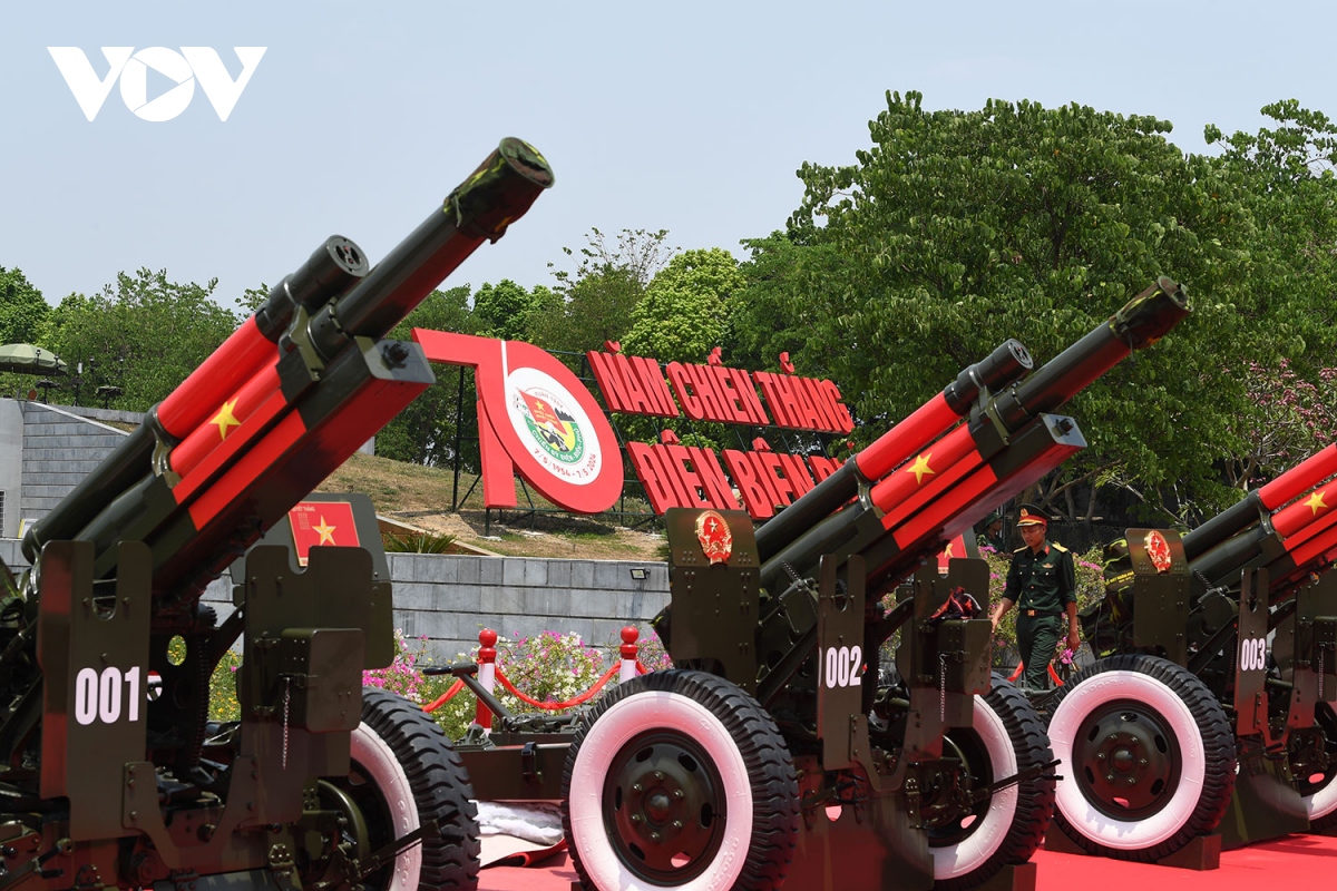 | Những khẩu pháo lễ tại Bảo tàng Chiến thắng Điện Biên Phủ đã sẵn sàng cho lễ diễu binh ngày 7/5. |