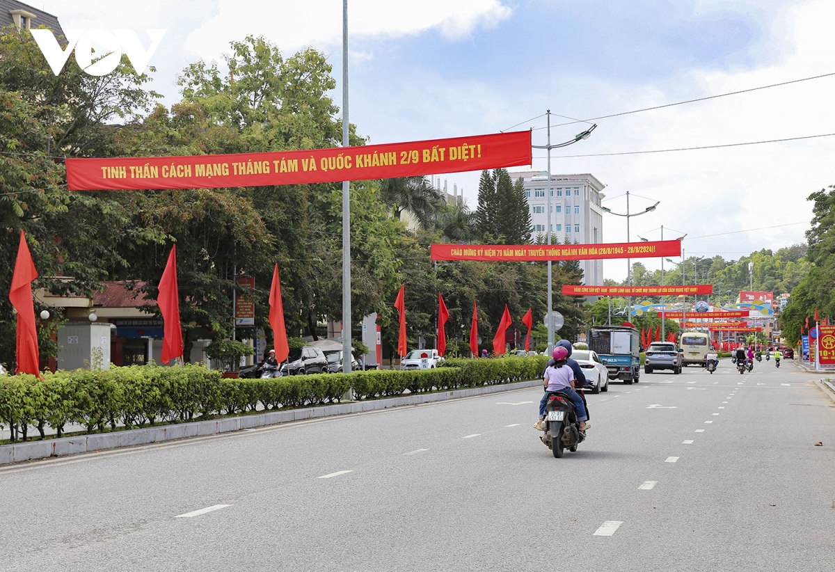 (VOV5) -Những ngày này, trên khắp các tuyến đường, ngõ xóm của thành phố Điện Biên Phủ, tỉnh Điện Biên đều rực một sắc thắm của cờ đỏ sao vàng và khẩu hiệu chào mừng Quốc khánh 2/9.