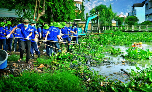 Đoàn viên thanh niên Tp.Hồ Chí Minh làm sạch kênh ngòi tại địa bàn thành phố. Ảnh: nongthon.doanthanhnien.vn |