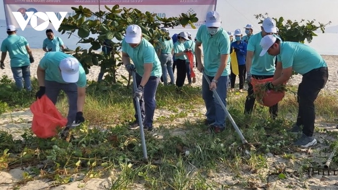 Mới đây, thành phố Đà Nẵng tổ chức ra quân vệ sinh môi trường biển. Khoảng 300 đoàn viên thanh niên; cán bộ, viên chức Tài nguyên và Môi trường, Hiệp hội Du lịch, Sở Du lịch tham gia dọn vệ sinh bờ biển Đà Nẵng. Ảnh: VOV |