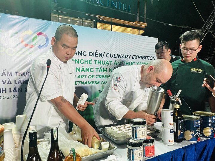 | Đầu bếp trong nước và quốc tế phục vụ khách trải nghiệm dùng thử các món ăn dân gian mỗi ngày tại GRECO 2024. Ảnh: T. Phượng |
