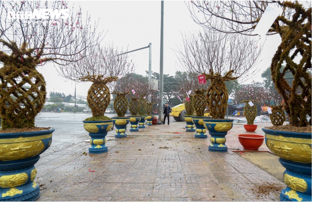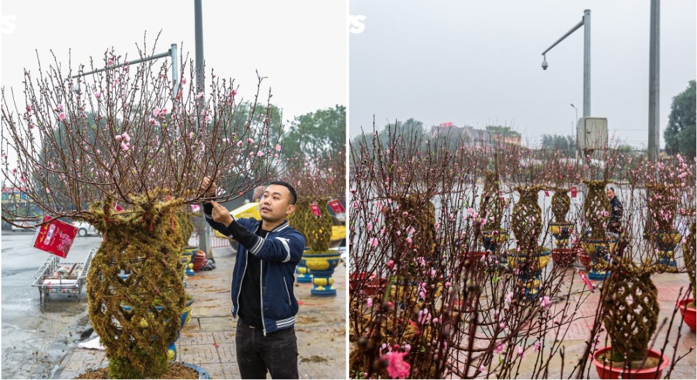 “Mỗi chậu cây được kết từ 8-10 cây đào lại với nhau, sau đó uốn thành hình dáng chiếc lộc bình. Theo ý nghĩa phong thủy, lộc bình mang lại tài lộc, may mắn, cất giữ tài sản của cải. Đặt chậu đào lộc bình trong nhà sẽ giúp giữ vượng khí, chiêu tài lộc cho gia chủ”, anh Việt cho hay. |