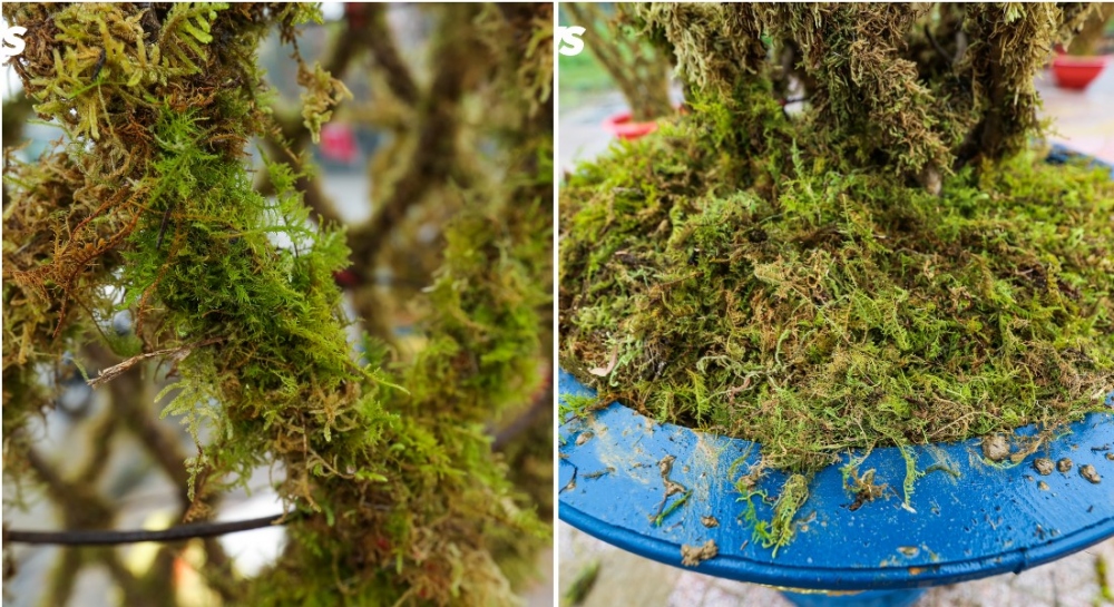 Xung quanh gốc và thân cây được phủ kín bởi rong rêu dại. |