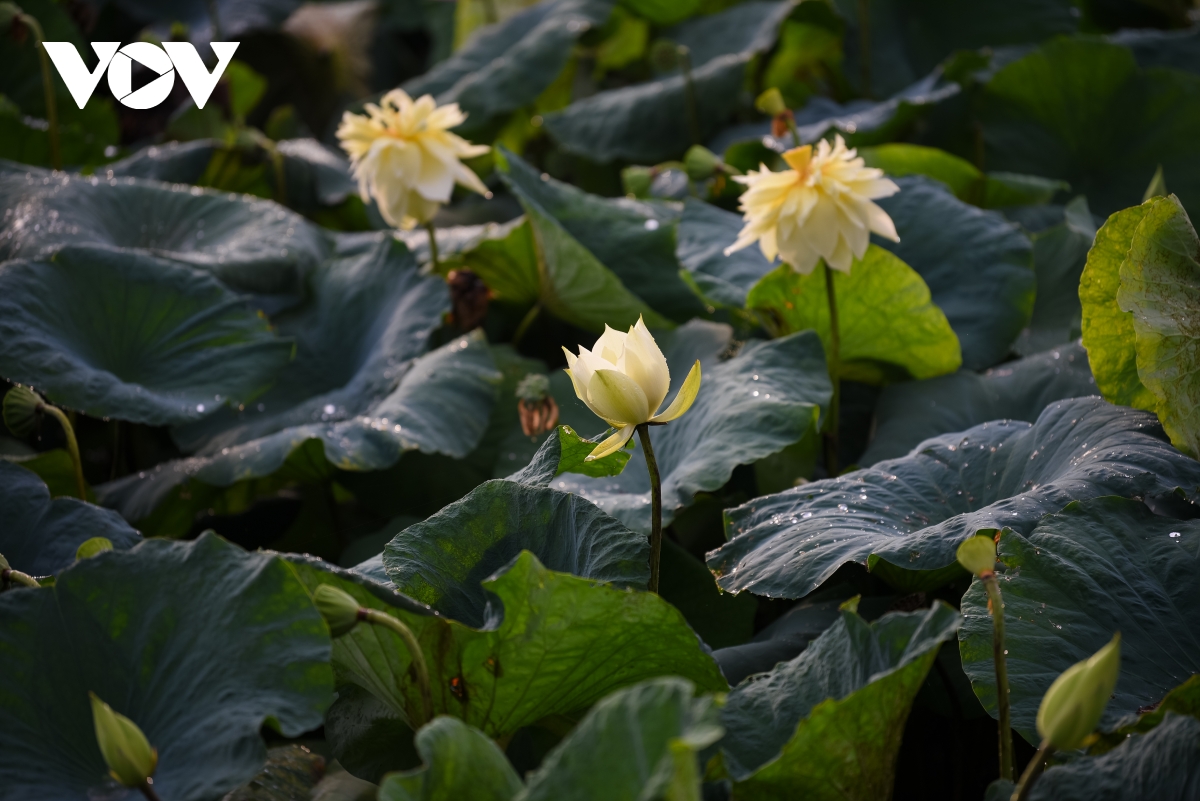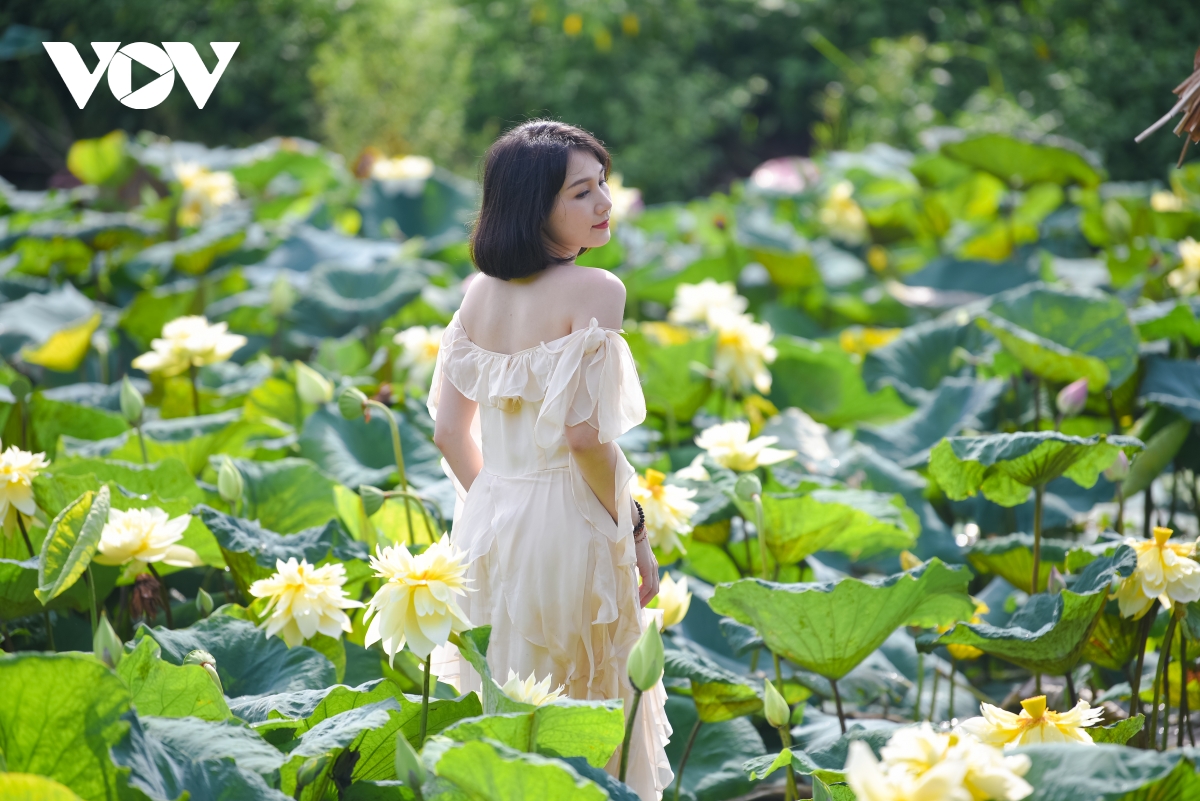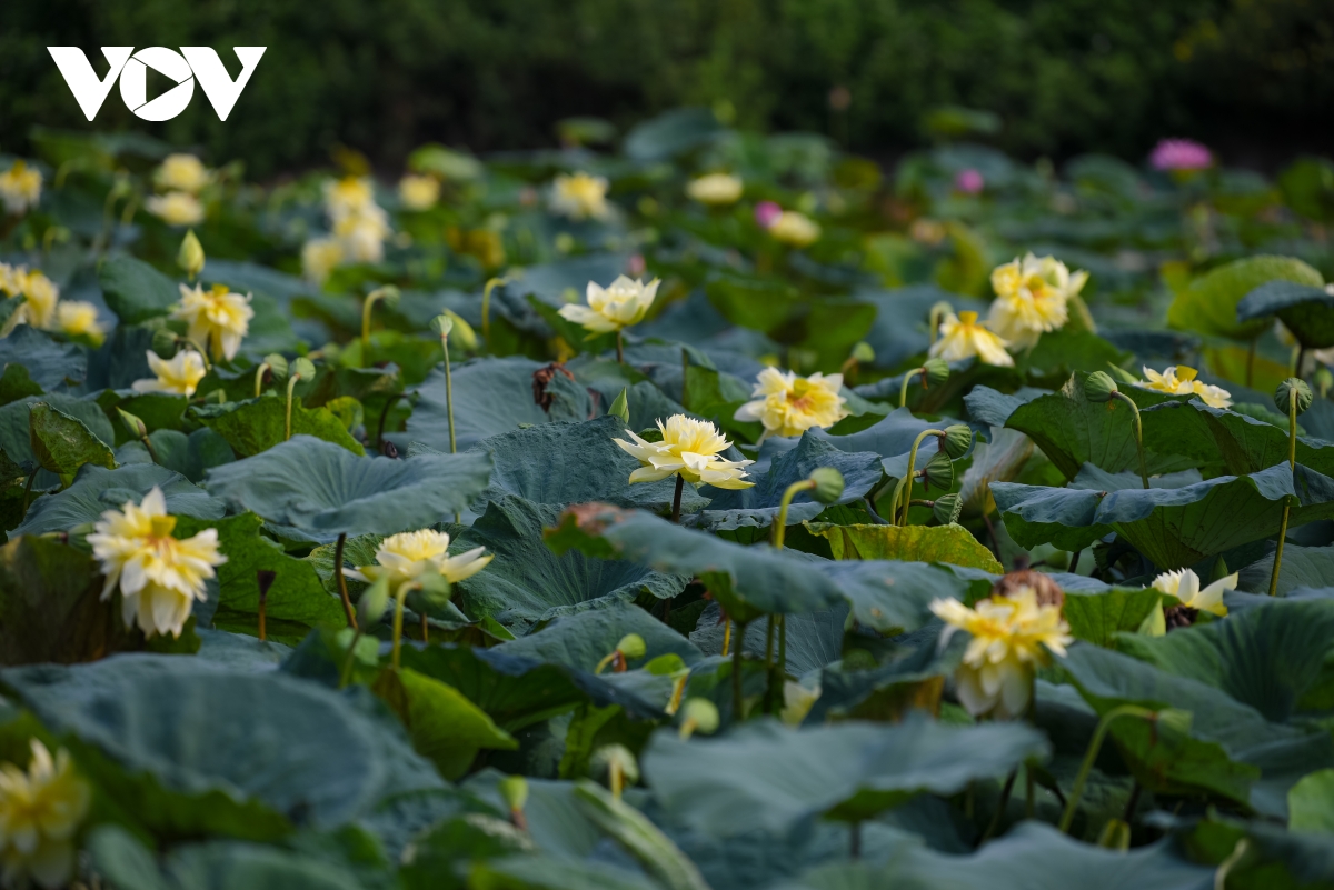 Năm nay, ngoài những giống sen đã quen thuộc như sen hồng, sen trắng, đầm hoa sen vàng tại Thanh Oai, Hà Nội cũng là điểm hút khách đến thăm quan, chụp ảnh. |