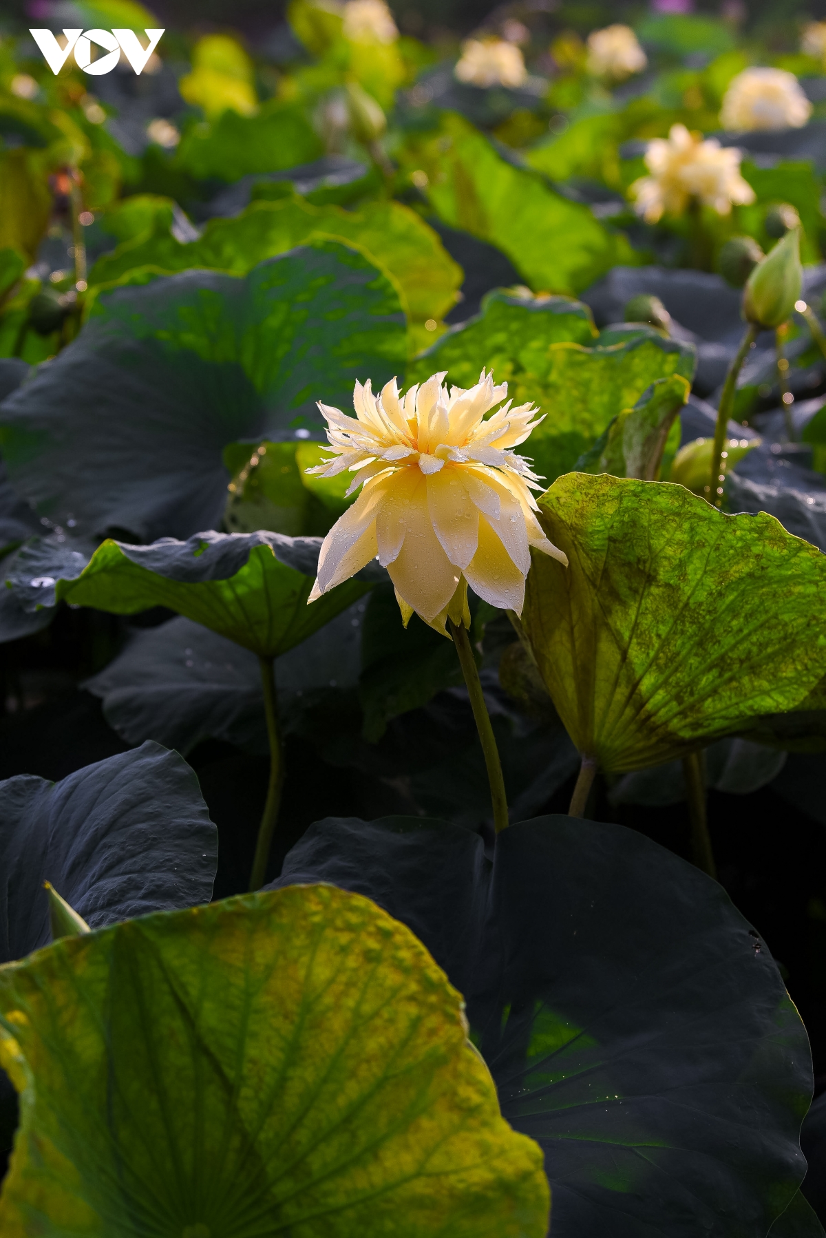Những bông hoa sen có màu vàng nhạt, cánh kép dày mới mẻ, lạ mắt khiến nhiều người ngạc nhiên, thích thú. |