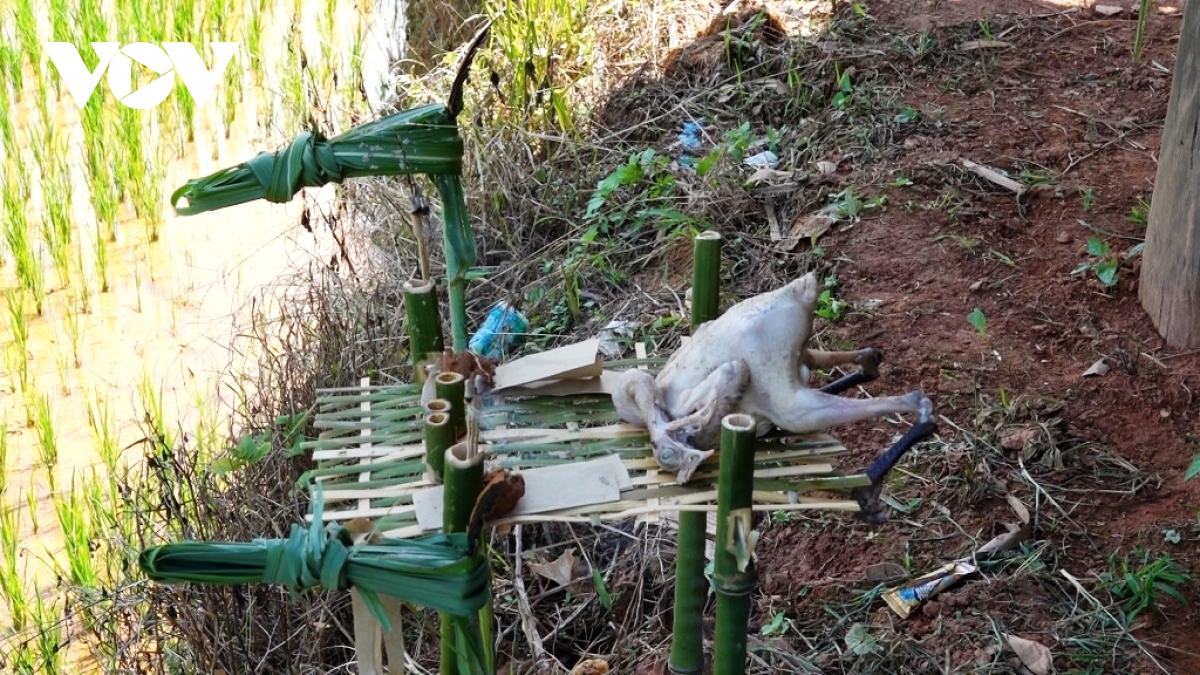 Khi đó, chủ nhà sẽ khấn:“Gà đã chín, xin mời các vị về nhận gà chín, rượu và giấy bạc; mong muốn các vị sau khi nhận sẽ giúp gia đình tôi bảo vệ mùa màng, đuổi côn trùng, chim chóc để có 1 mùa vụ tươi tốt như bao gia đình khác, để gia đình tôi có của ăn, của để, cuộc sống ấm no, hạnh phúc”.