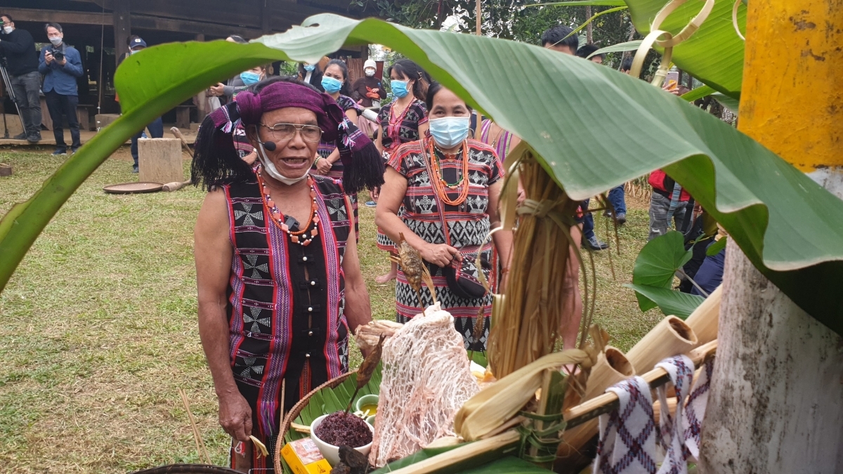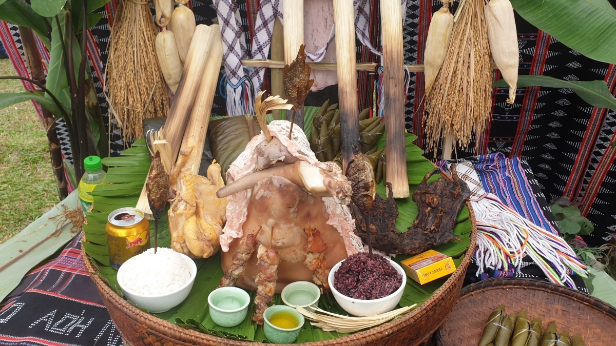 Già làng sẽ quy định số lượng lễ vật cúng cho từng hộ gia đình. Mâm cúng thường có các lễ vật: Cơm lam nướng ống, chuột rừng nướng ống, cá suối nướng ống, gà, trứng gà, lợn, bánh giã nếp, A Quát, rượu cần, rượu đoác…