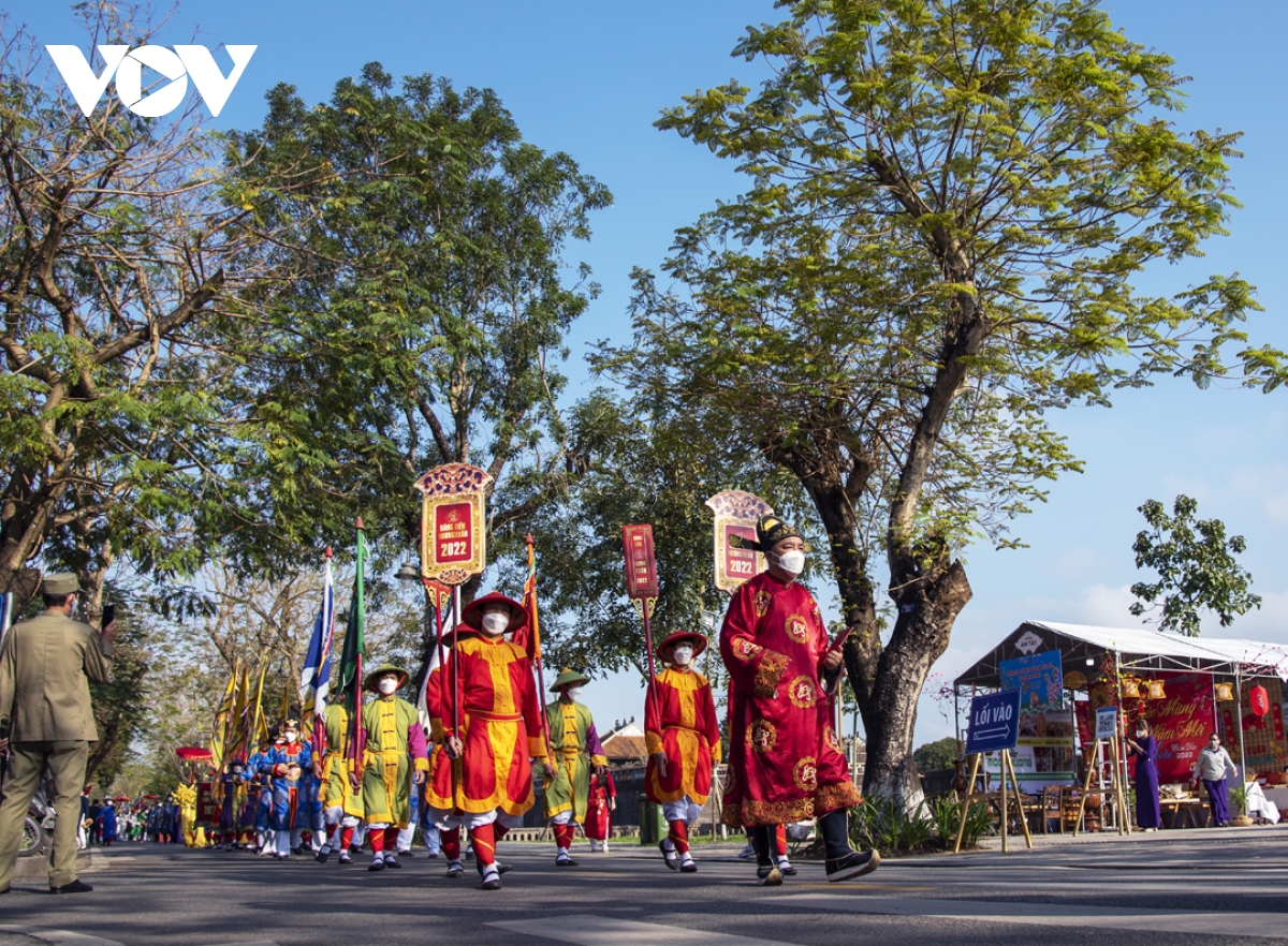 Đoàn rước đi theo lộ trình từ đường Lê Huân – đường 23 tháng 8 – Ngọ Môn – Thế Miếu (thành phố Huế).