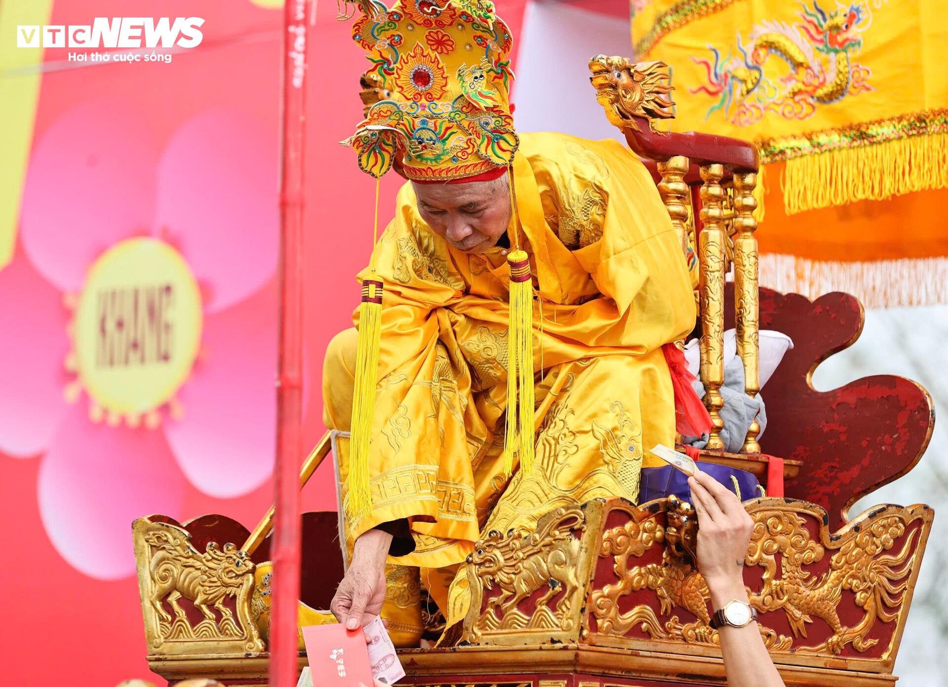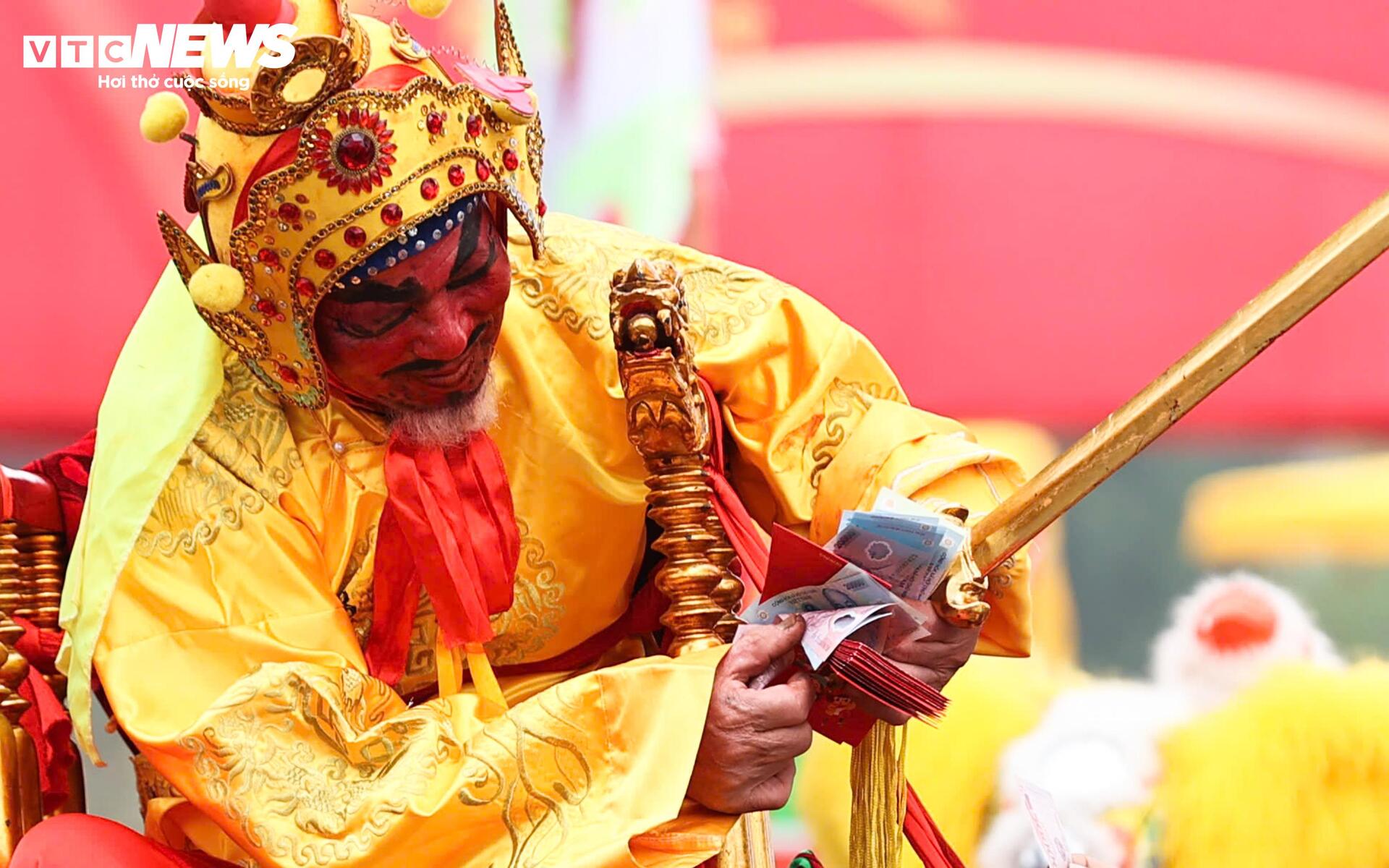 “Chúa” cũng chuẩn bị sẵn các xấp tiền để phát cho người dân và du khách; có đoạn, đội khiêng kiệu hô vang, di chuyển nhanh để mở đường cho kiệu “vua”.