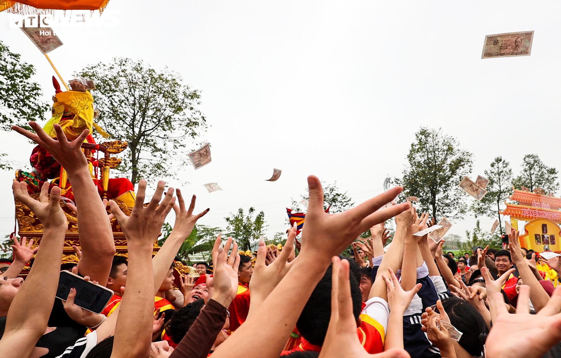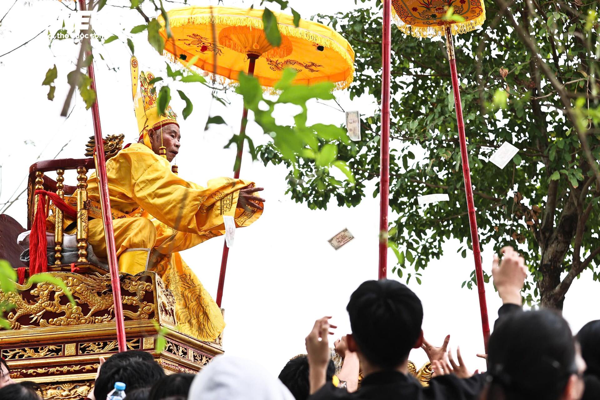 Dọc đường, “vua” nhiều lần tung tiền lộc xuống hai bên.