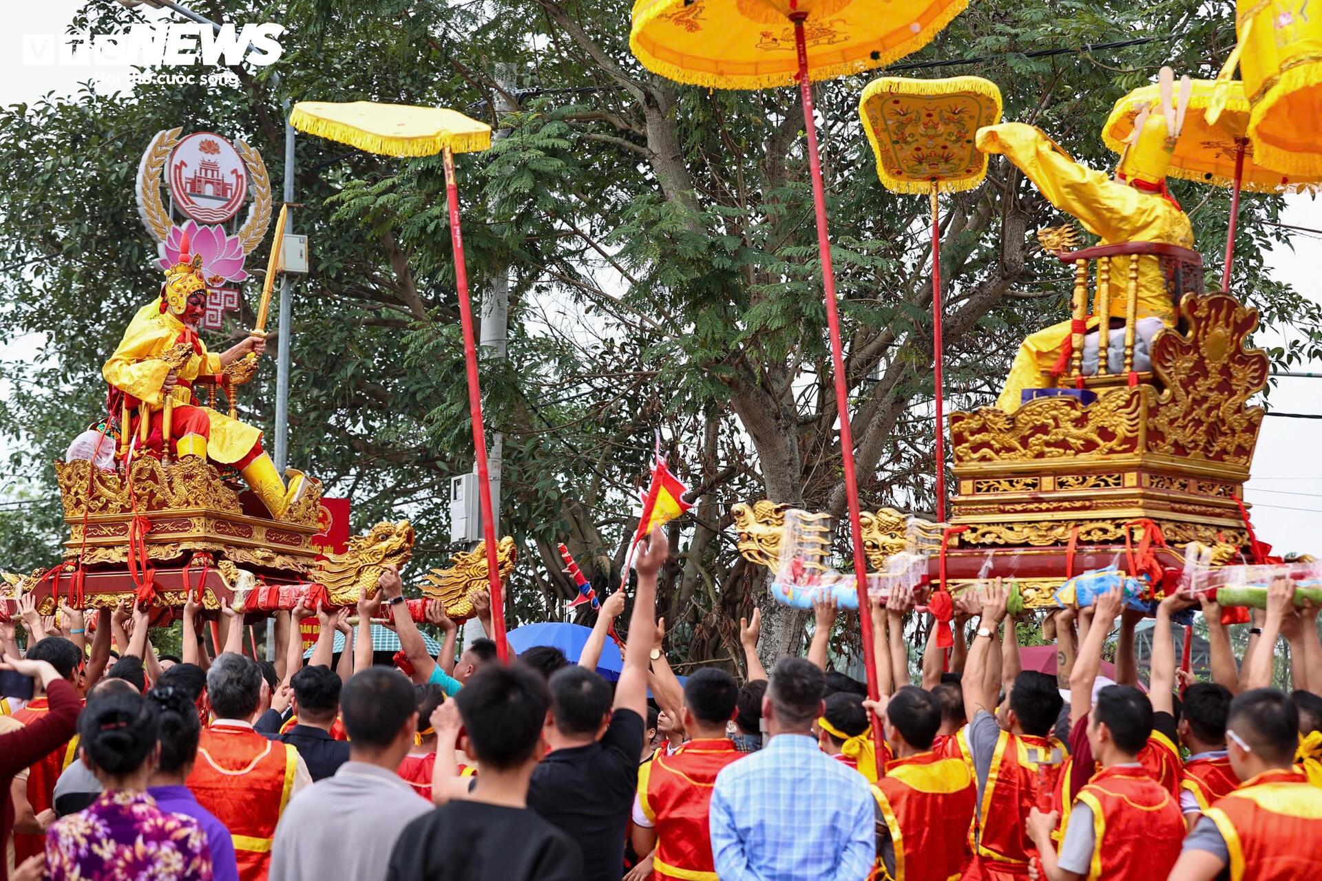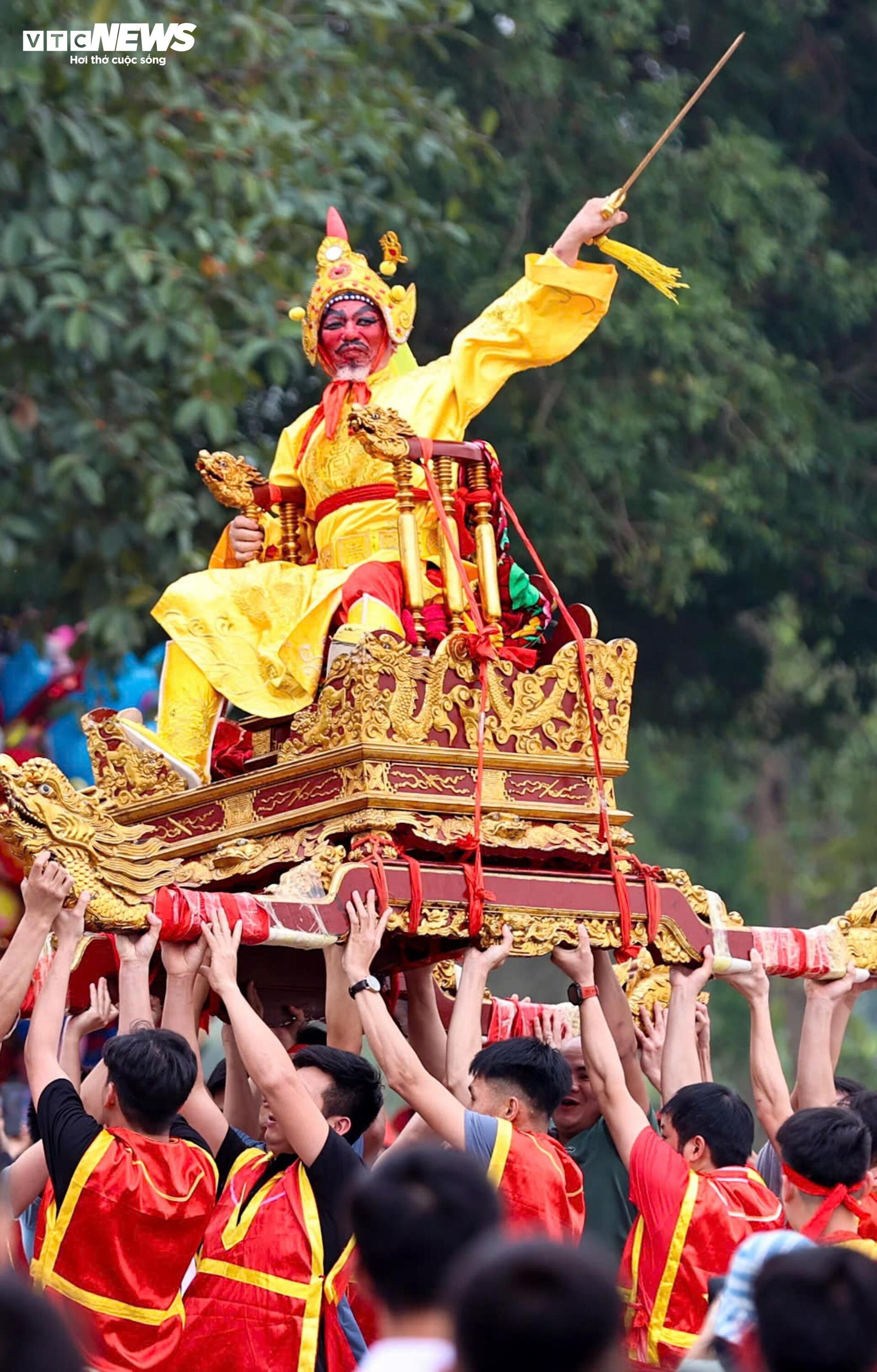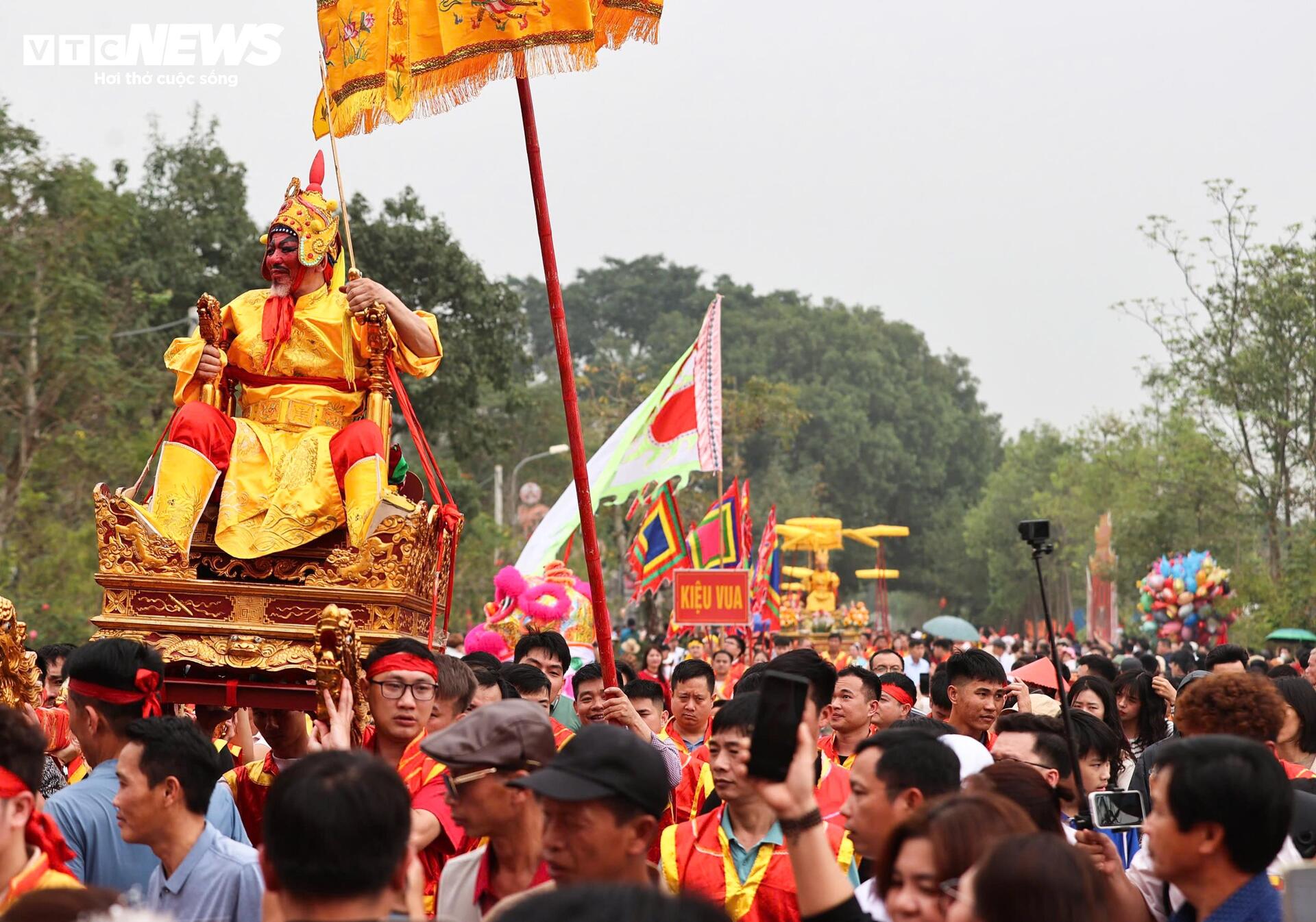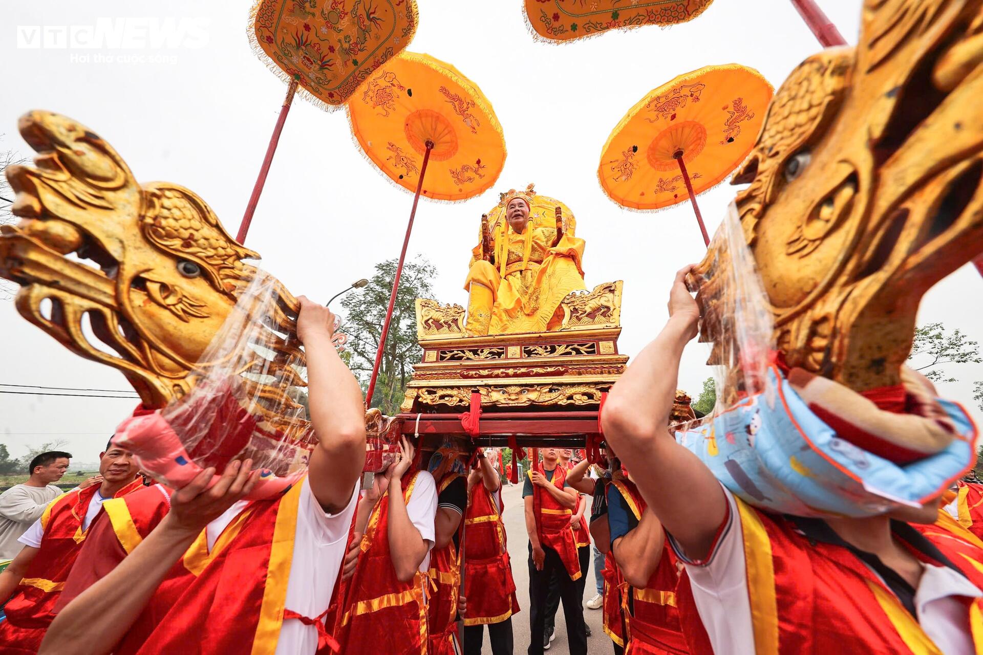 "Vua” và “chúa” ngồi trên kiệu có lọng che, được trai tráng khiêng qua các trục đường chính của làng.
