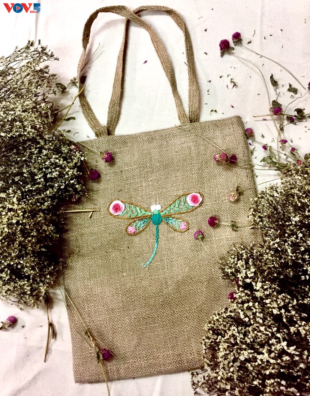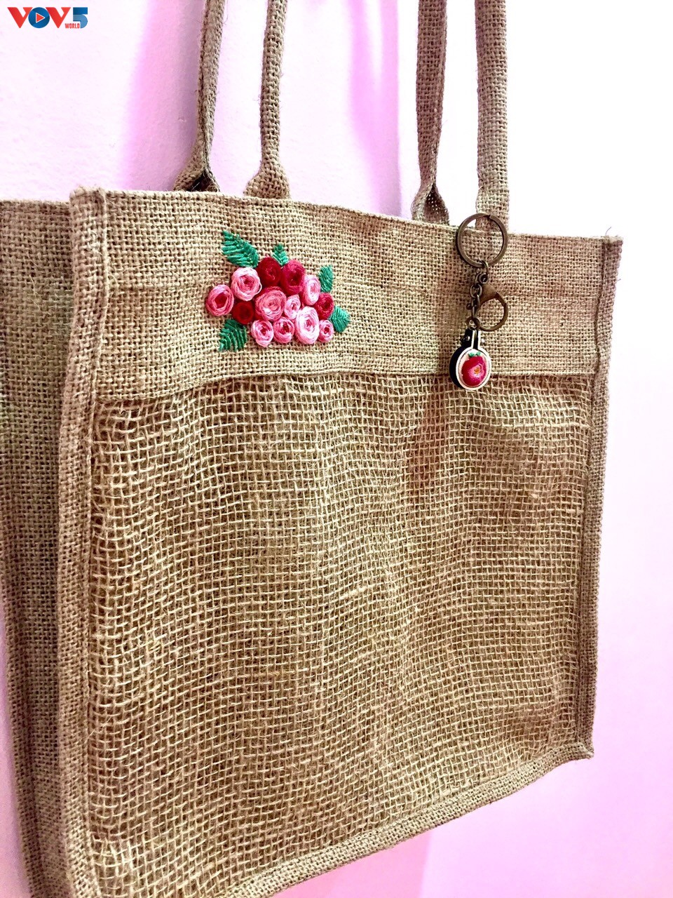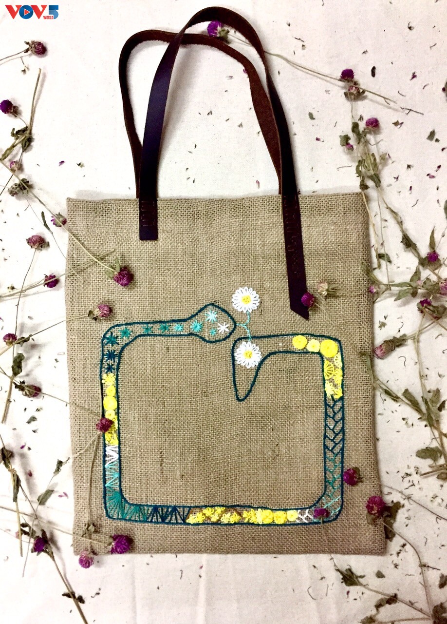 Hai cô gái trẻ đã "khoác áo mới" cho chất liệu vải đay, biến chúng thành những chiếc túi xinh xắn hợp thời trang. Trong đó, có những chiếc túi được thiết kế dựa trên cảm hứng từ tranh dân gian Đông Hồ.