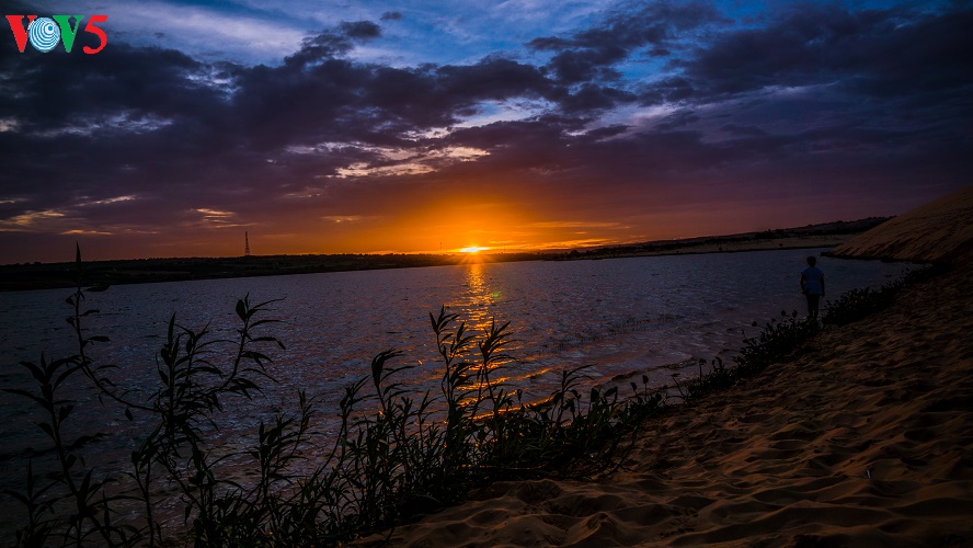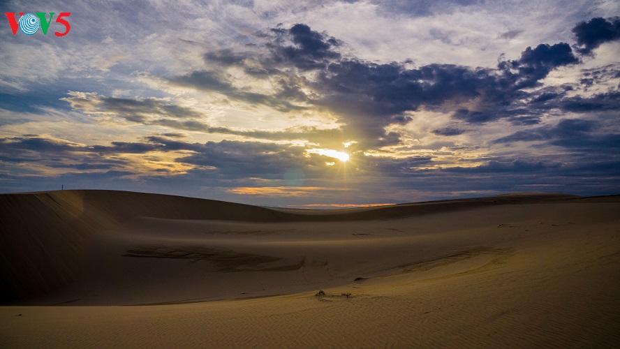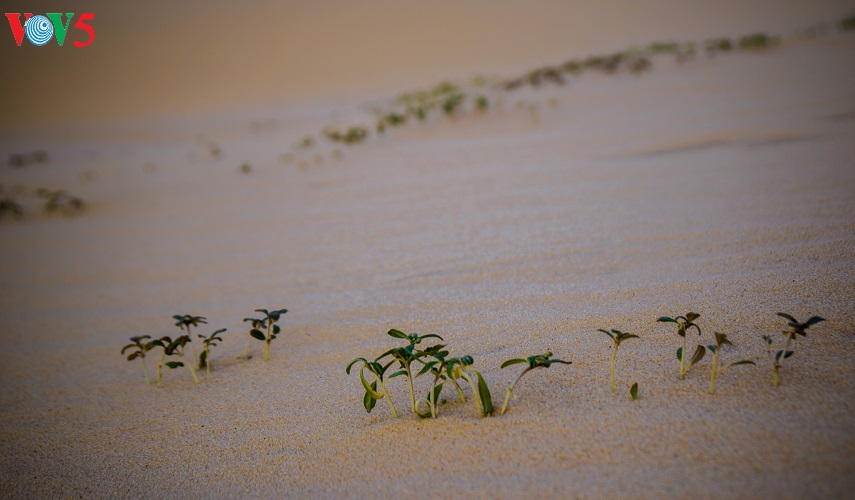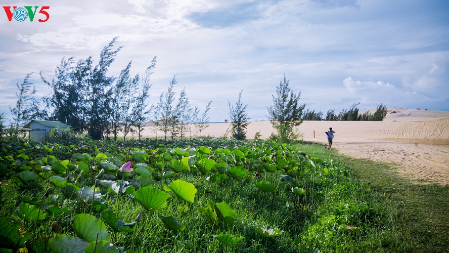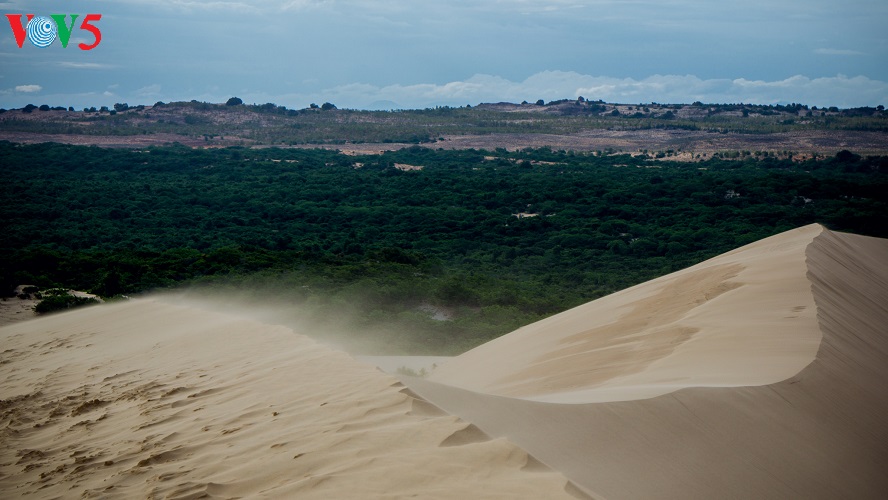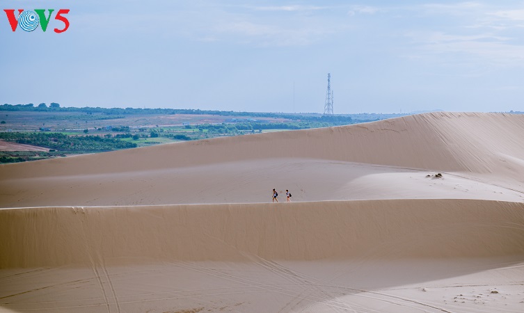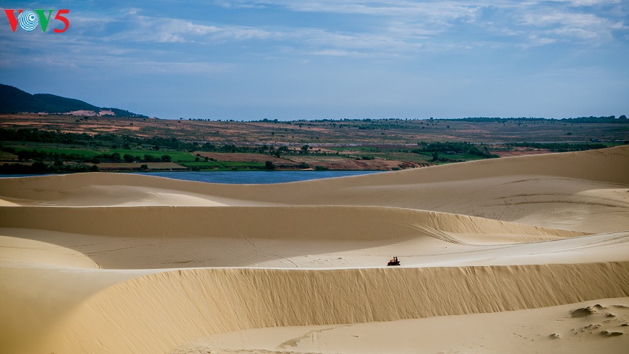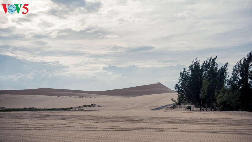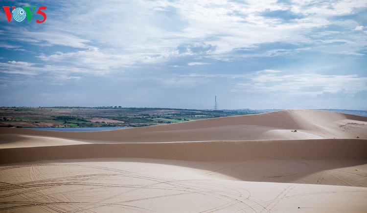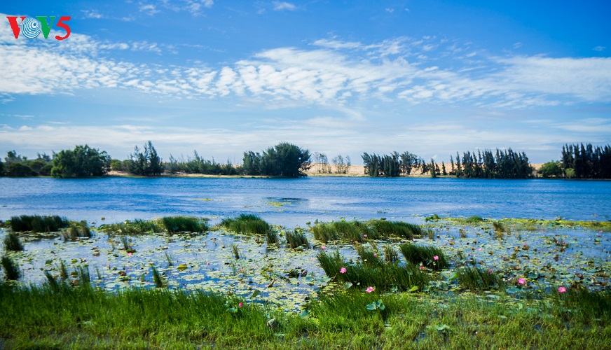 (VOV5) - Những cồn cát nối tiếp, trải dài, trắng ngà pha vàng bên bờ biển xanh rì rào sóng vỗ và cạnh những khu rừng bát ngát tạo nên một vẻ đẹp kỳ thú cho mảnh đất nắng gió Bình Thuận. Đó là vẻ đẹp hoang sơ, kỳ vĩ mà cũng rất đỗi thơ mộng, hữu tình của đồi cát Bàu Trắng thuộc xã Hòa Thắng, huyện Bắc Bình. Khá nhiều du khách ví khu vực này giống như một tiểu sa mạc bên biển xanh bởi địa hình, hệ sinh thái mang một số tính chất đặc trưng của những sa mạc cát. Sự kết hợp giữa vẻ đẹp của cát, hồ nước ngọt xanh trong, bờ biển, cây bụi, những đám sen trên hồ và cả cuộc sống đơn sơ, bình yên của người dân giữa lòng sa mạc cát tạo ra vẻ đẹp đặc sắc, gây ấn tượng như một tiểu kỳ quan của thiên nhiên.