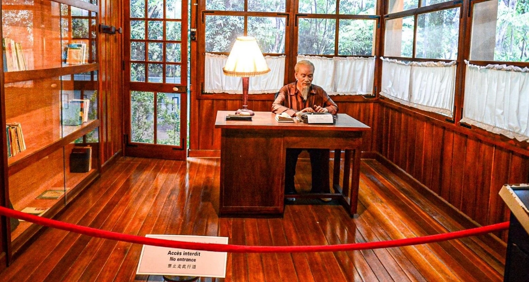 Tượng sáp Chủ tịch Hồ Chí Minh và không gian mô phỏng lại phòng làm việc của Bác.