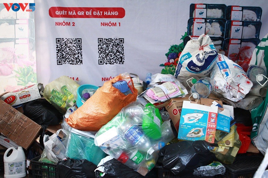 Khi dịch bệnh được kiểm soát, lệnh phong tỏa được dỡ bỏ, cuộc sống dần trở lại bình thường thì nơi đây lại là điểm đổi rác phế liệu lấy thực phẩm.