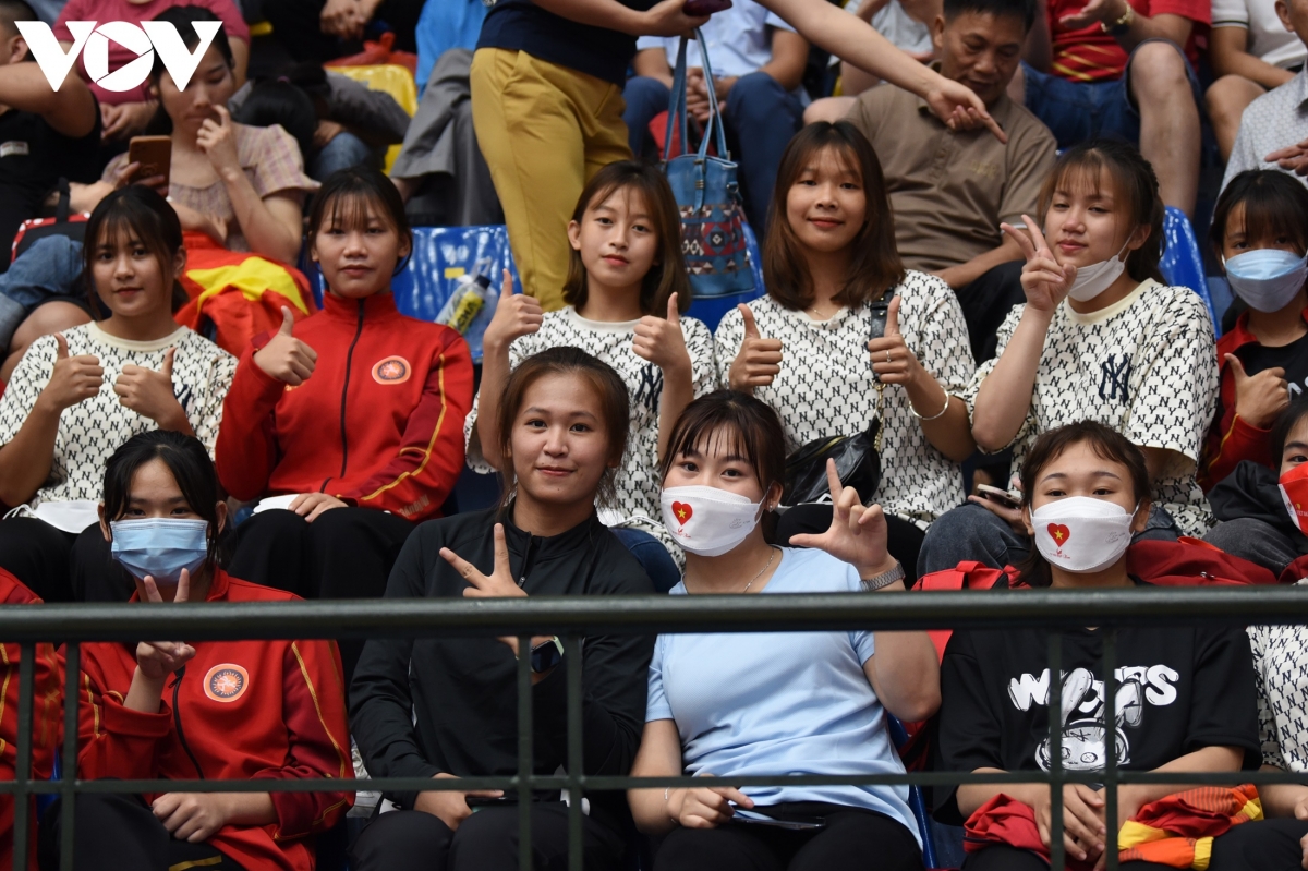 Ngày 19/5, hàng nghìn CĐV đã có mặt tại nhà thi đấu Gia Lâm (Hà Nội) để cổ vũ cho đội tuyển vật Việt Nam thi đấu những trận cuối cùng, tranh HCV tại SEA Games 31. Trước đó, các đô vật Việt Nam đã giành 15 HCV ở các nội dung thi đấu khác nhau. (Ảnh: Trọng Phú)