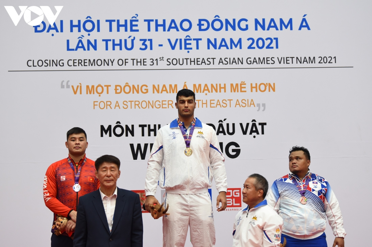 Đô vật duy nhất giành HCB của đội tuyển vật Việt Nam là Ngô Văn Lâm (áo đỏ) ở hạng cân 125kg. Đứng cạnh Ngô Văn Lâm là vận động viên người Campuchia, gốc Iran giành HCV ở hạng cân này.