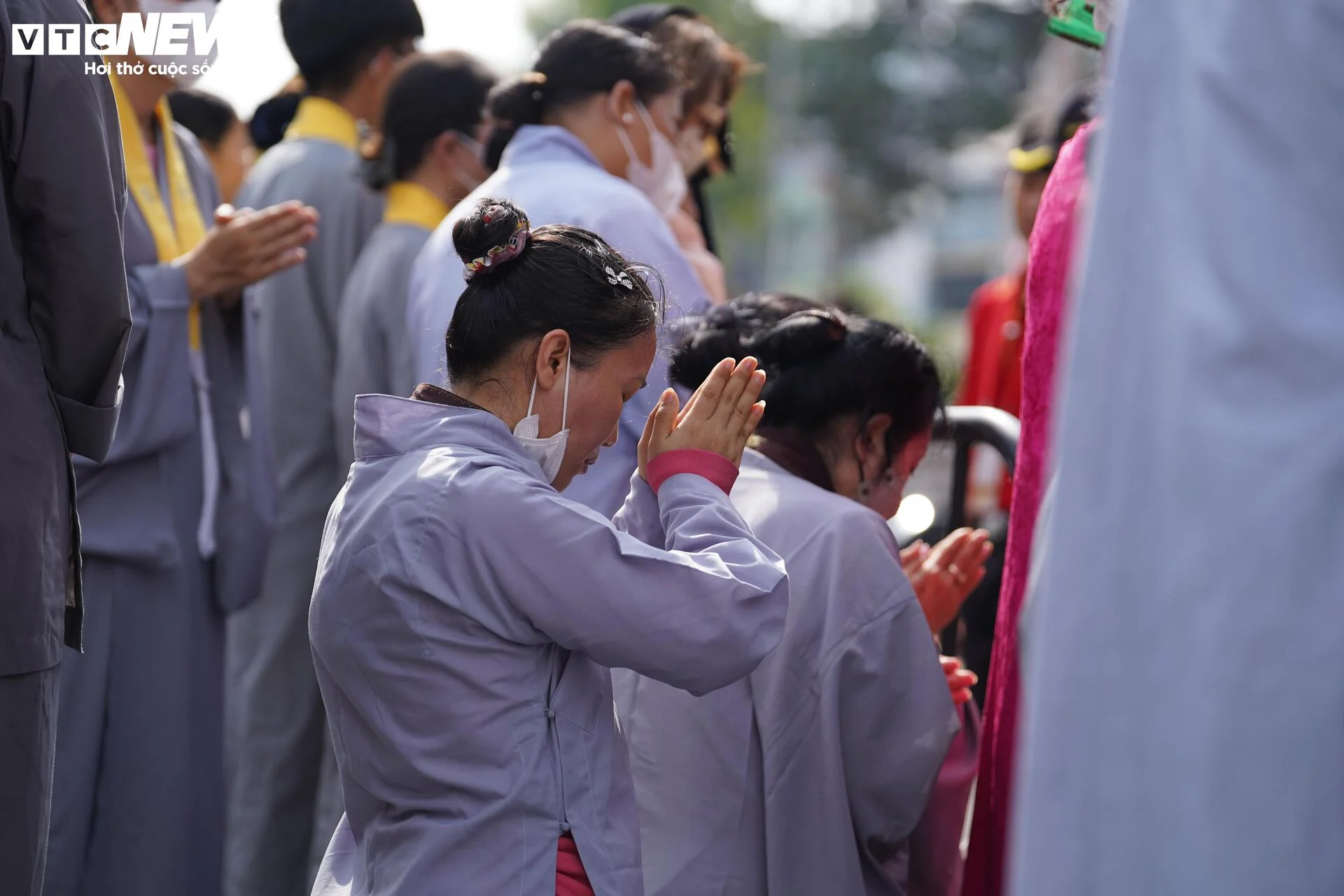 | Các phật tử cung kính chắp tay khi nghi thức cung thỉnh diễn ra. |