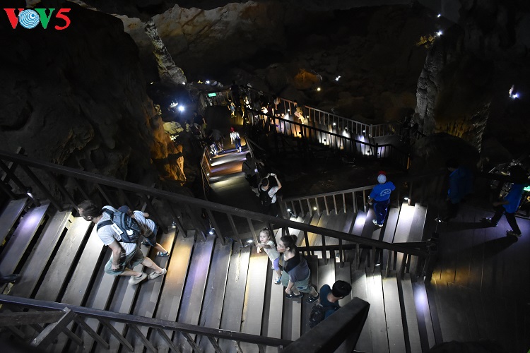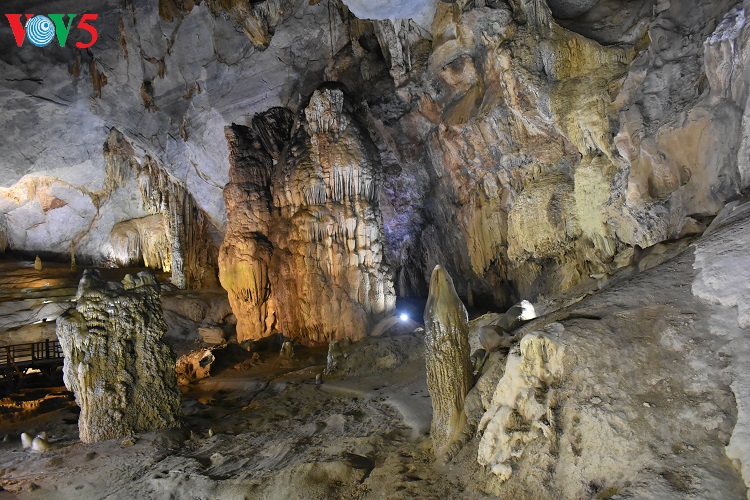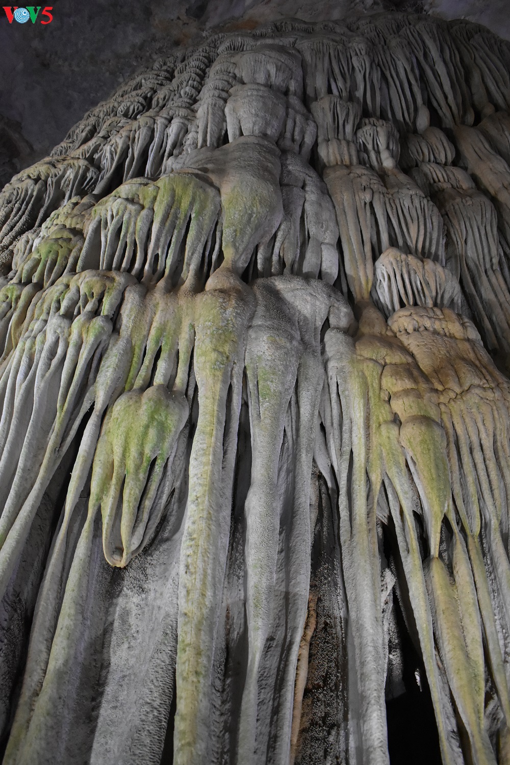 Khi vào sâu dần trong hang, chúng ta sẽ thấy được vẻ đẹp hùng vĩ của các khối măng đá, nhũ đá thiên hình vạn trạng. |