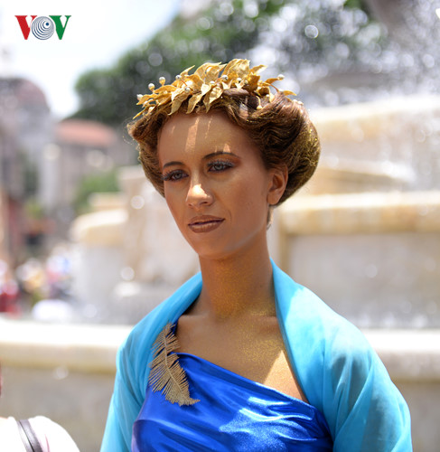 | Khả năng hóa trang đỉnh cao khiến du khách nào cũng phải trầm trồ về vẻ đẹp của nhân vật và muốn được chụp hình lưu niệm cùng nghệ sĩ. |