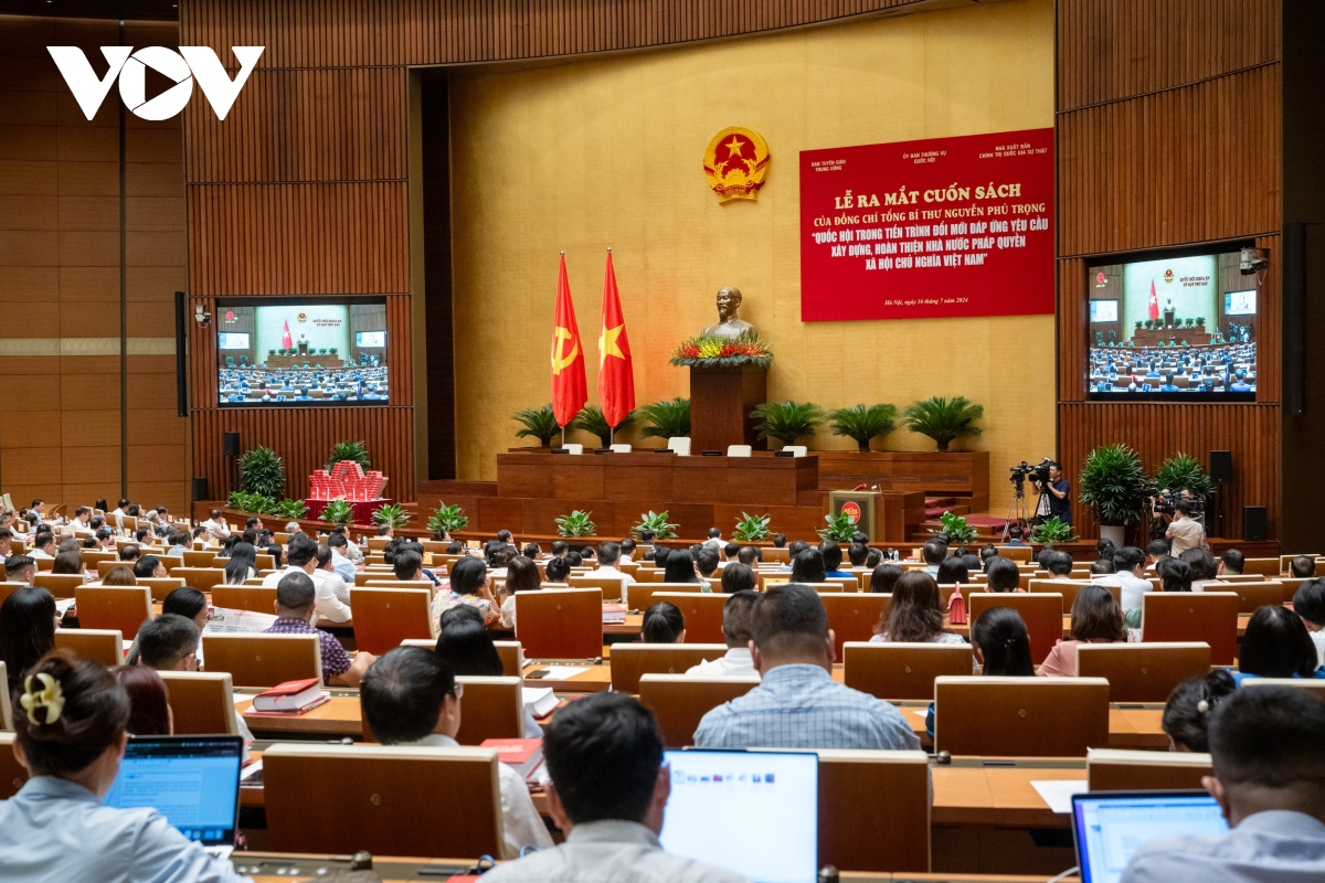Toàn cảnh lễ ra mắt sách của Tổng Bí thư Nguyễn Phú Trọng về Quốc hội. Ảnh: VOV |