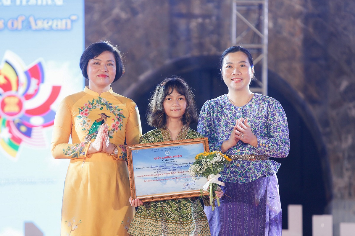 Phó Chủ tịch thường trực Liên hiệp các tổ chức hữu nghị thành phố Hà Nội Trần Thị Phương cùng Phó Đại sứ Lào Latana Siharaj trao giải Đặc biệt cho thí sinh Devanka Morritz đến từ Đại sứ quán Indonesia. Ảnh: Thương Nguyệt/hanoimoi.vn |
