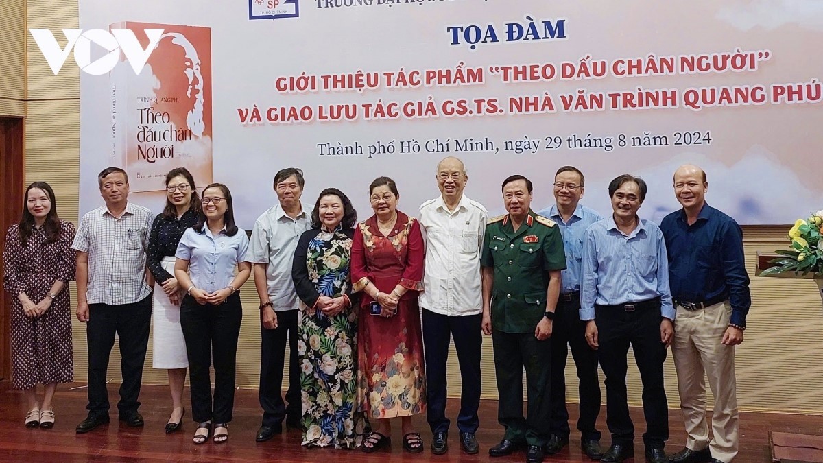 Cũng trong chiều 29/8, GS.TS - nhà văn Trình Quang Phú đã có buổi gặp gỡ, giới thiệu về tác phẩm “Theo dấu chân Người” tại trường Đại học Sư phạm TP. Hồ Chí Minh.