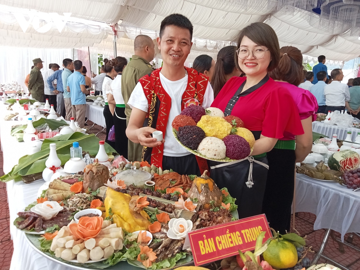 Ở loại hình Tập quán xã hội và tín ngưỡng, có Lễ Xên đông (Cúng rừng) của người Thái (thị xã Nghĩa Lộ, Yên Bái) và Nghi lễ Tết Xíp xí của người Thái trắng (huyện Quỳnh Nhai, huyện Phù Yên, tỉnh Sơn La). (Trong ảnh: Ẩm thực trong Lễ hội Tết Xíp xí. Ảnh: Lê Hạnh/VOV) |