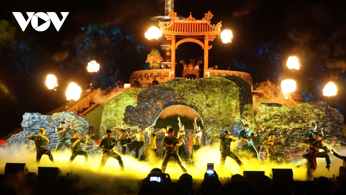 Chương trình nghệ thuật “Ước nguyện hòa bình Bản hùng ca bất diệt” kết nối quá khứ với hiện tại và tương lai. Ảnh: Lê Hiếu/VOV |