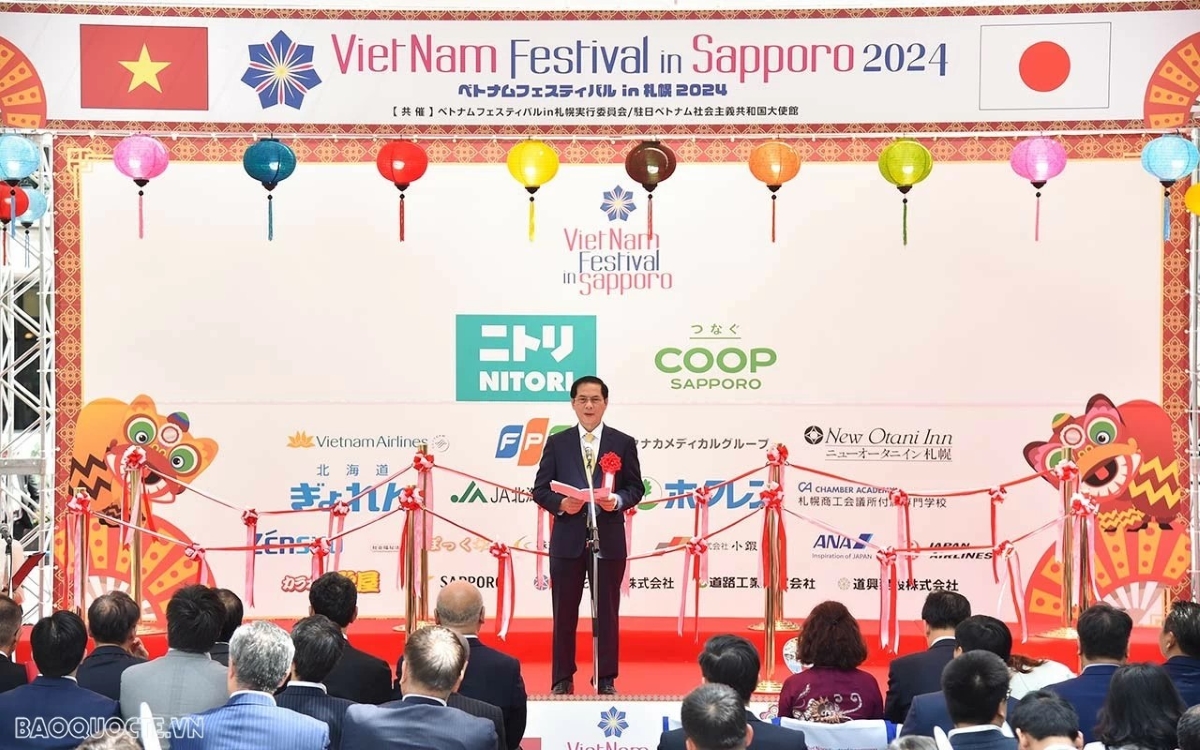 Ngày 10/8, trong khuôn khổ chuyến thăm chính thức Nhật Bản, Bộ trưởng Ngoại giao Bùi Thanh Sơn đã tham dự khai mạc Lễ hội Việt Nam lần thứ 3 tại thành phố Sapporo, tỉnh Hokkaido. Ảnh: TTXVN |